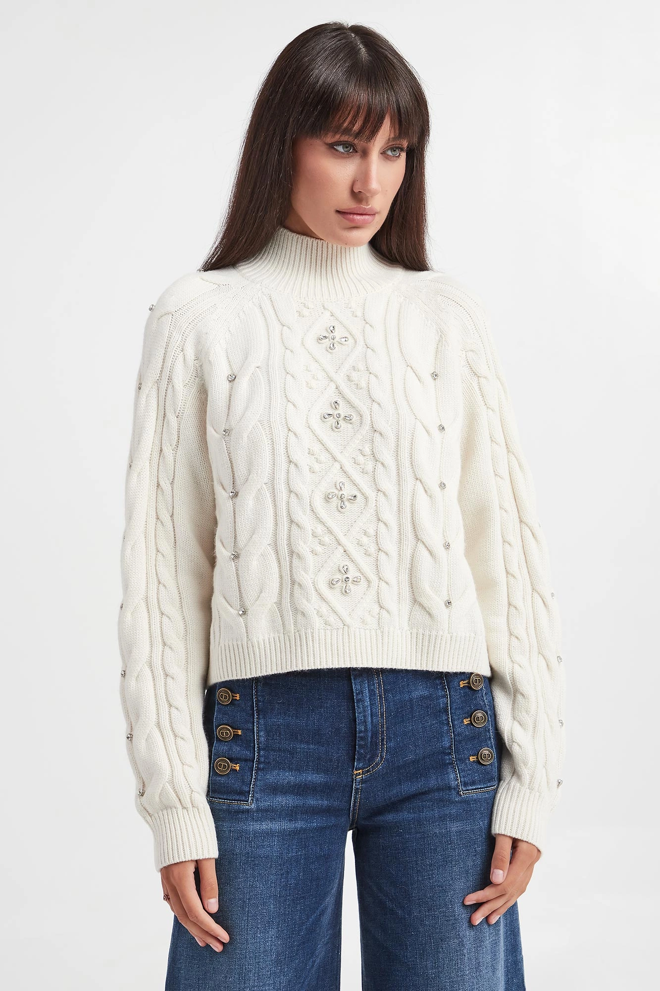 | Faktura: | Dzianina swetrowa Warkoczowy splot Kryształki |