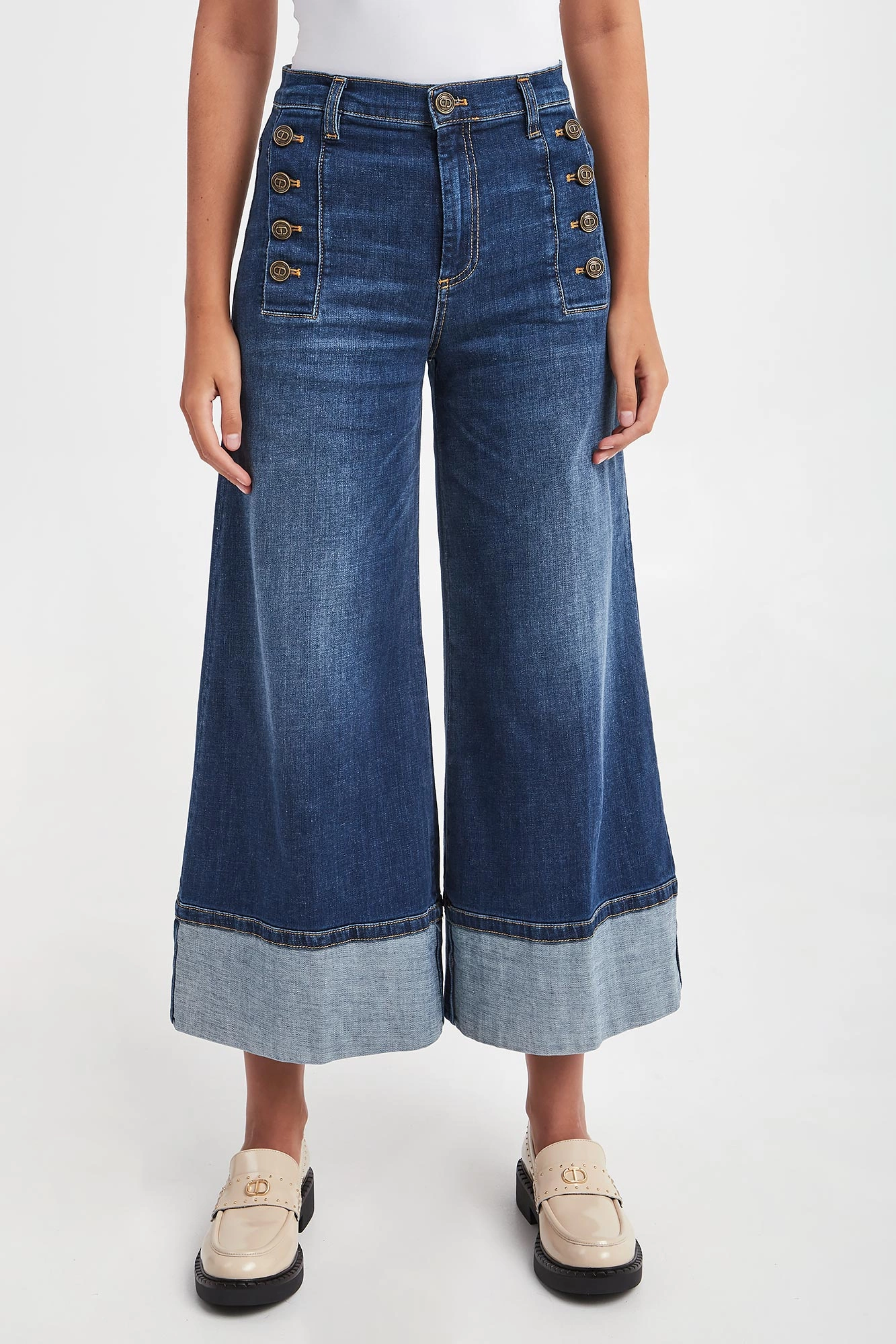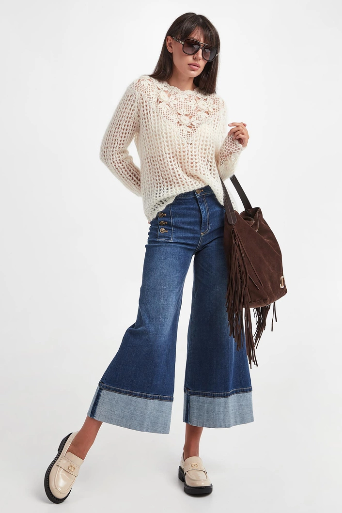 Rozmiar | Szerokość w talii [cm] | Szerokość w biodrach [cm] | Szerokość nogawki na dole [cm] | Wysokość stanu mierzona z przodu [cm] | Długość całkowita [cm] | Długość wewnętrzna nogawki [cm] |
