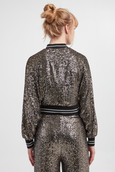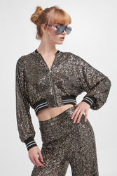- Dekolt, rękawy i dół wykończone ściągaczami w paski.