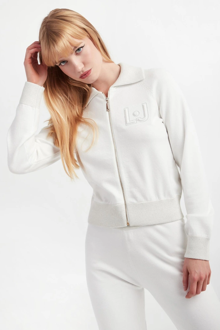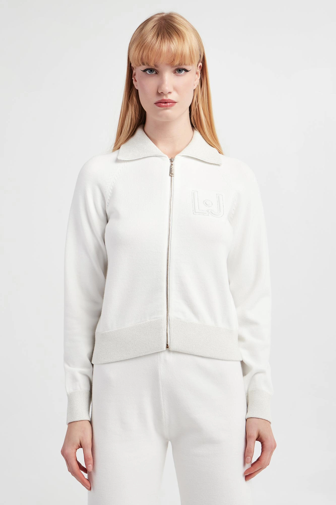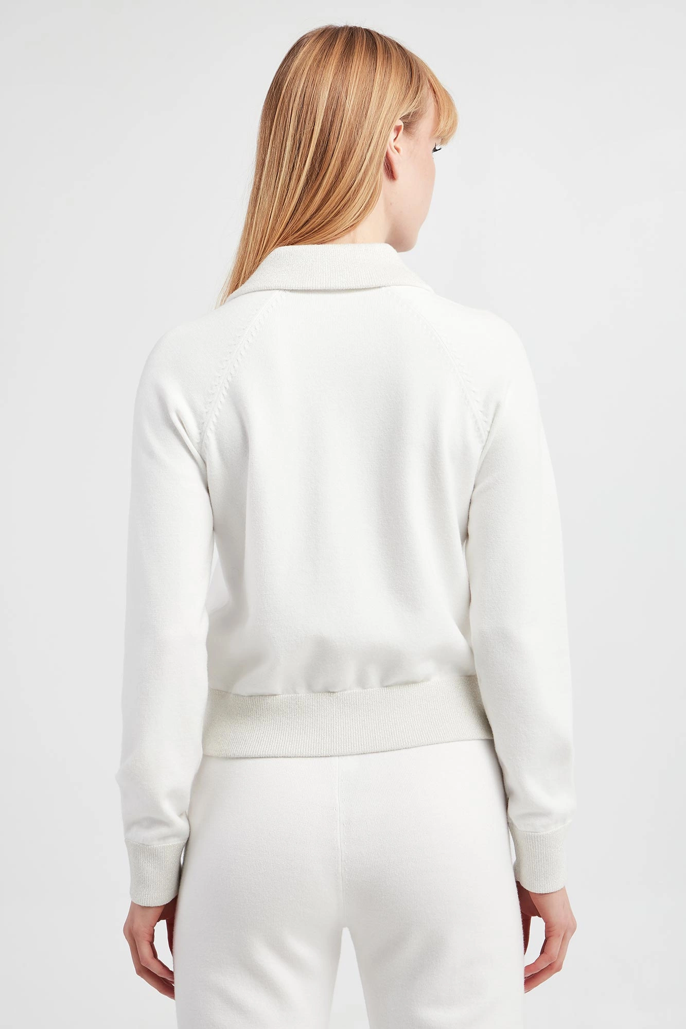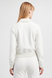 - Kołnierz, długie rękawy i dół wykończone ściągaczami przeszytymi metaliczną nicią.