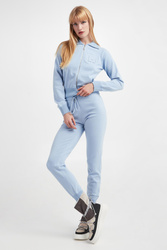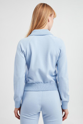 - Kołnierz, długie rękawy i dół wykończone ściągaczami przeszytymi metaliczną nicią.