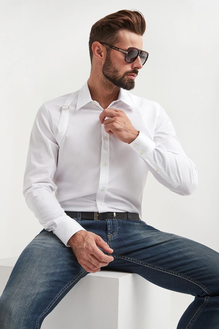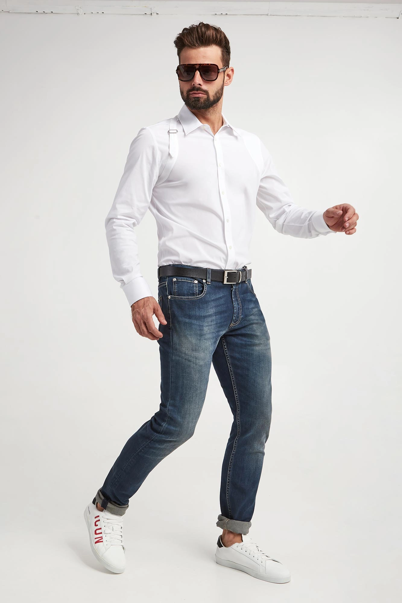 Model na zdjęciu, przy wzroście 184 cm, ma na sobie rozmiar 42.