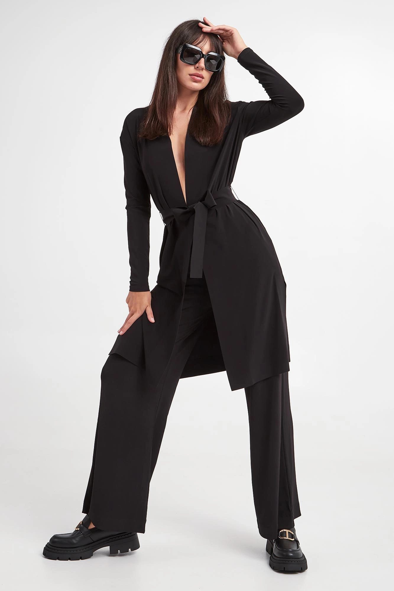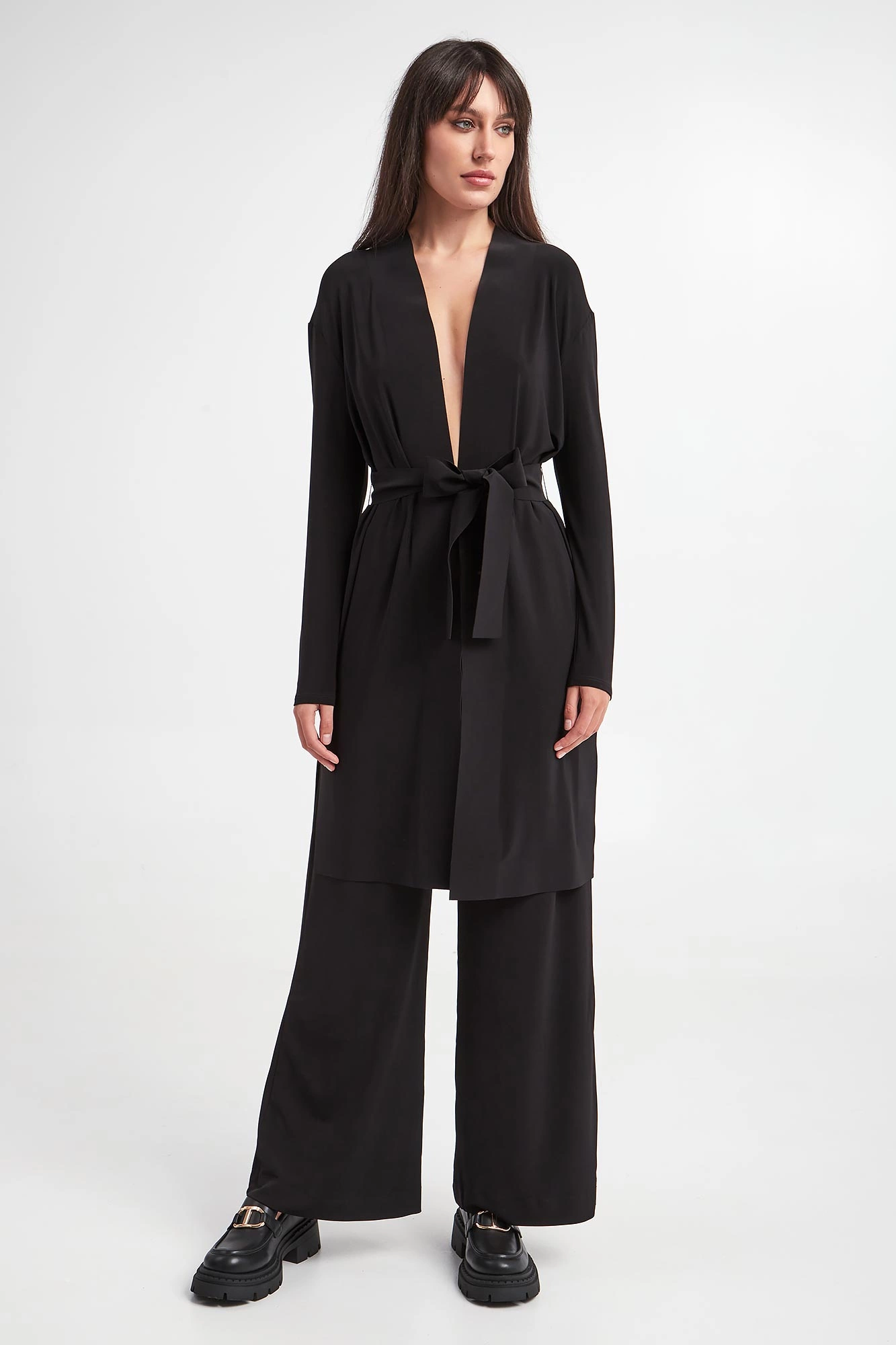 - Wiązany pasek w talii.