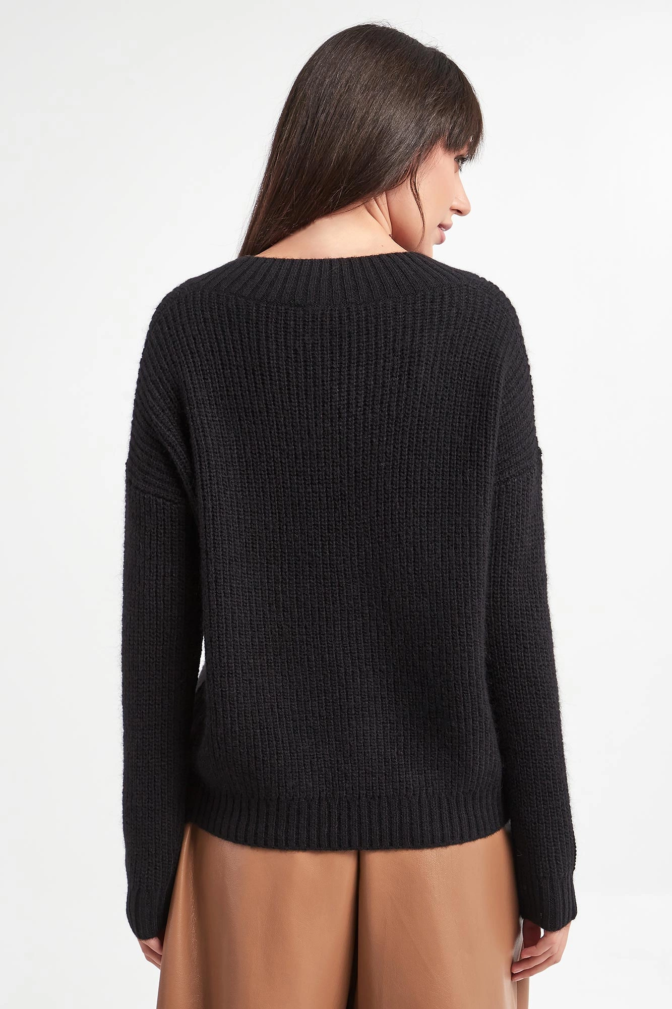 - Dekolt v-neck, długie rękawy i dół zakończone prążkowanymi ściągaczami.