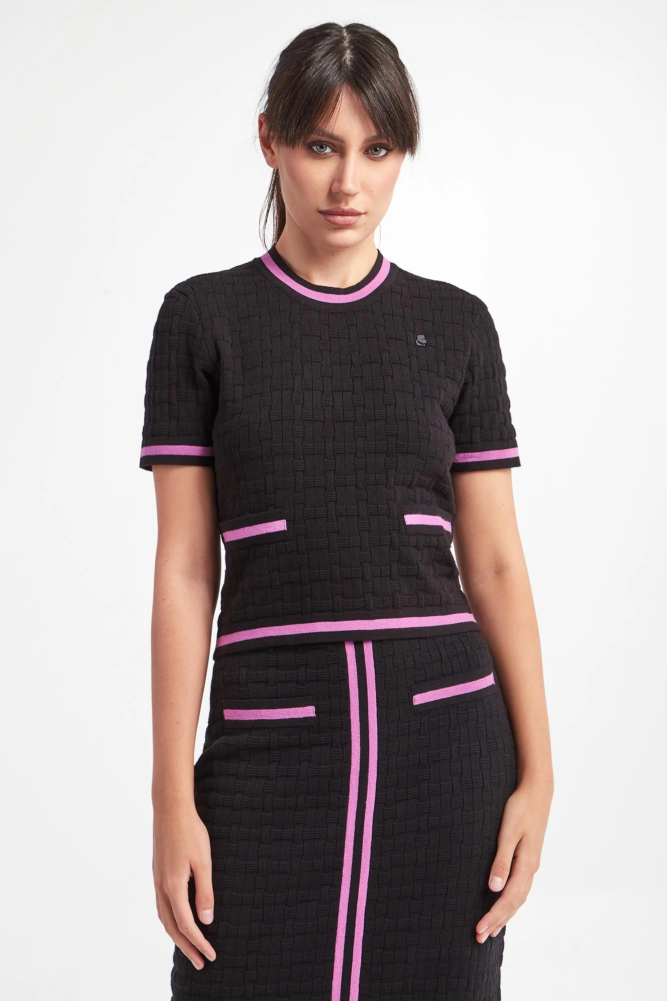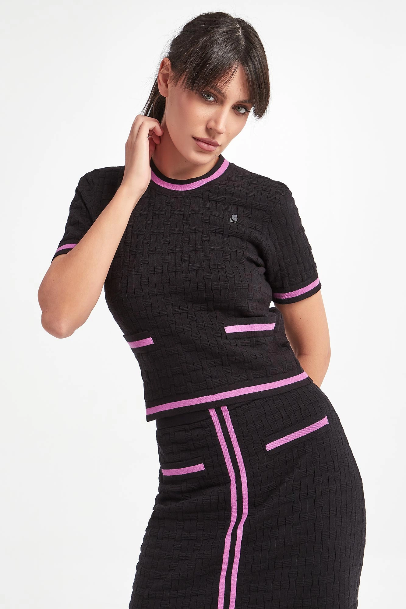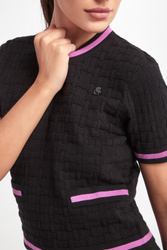 - Dekolt o-neck, krótkie rękawy i dół zakończone ściągaczami.