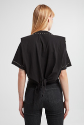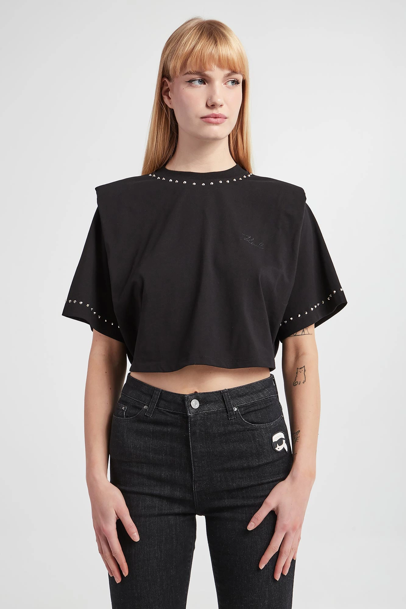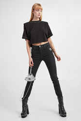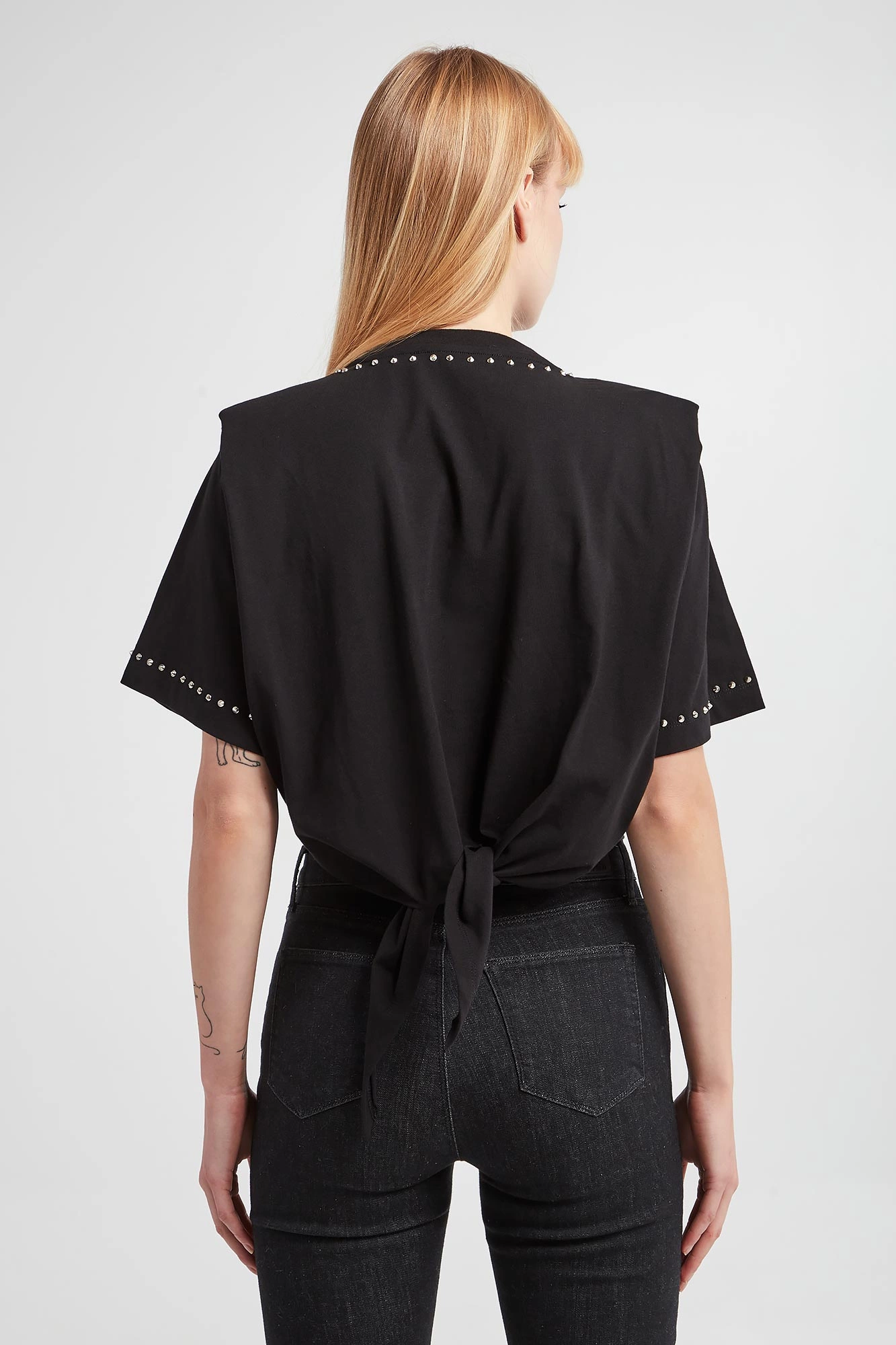 - Dekolt o-neck, rękawy i dół ozdobione ćwiekami.