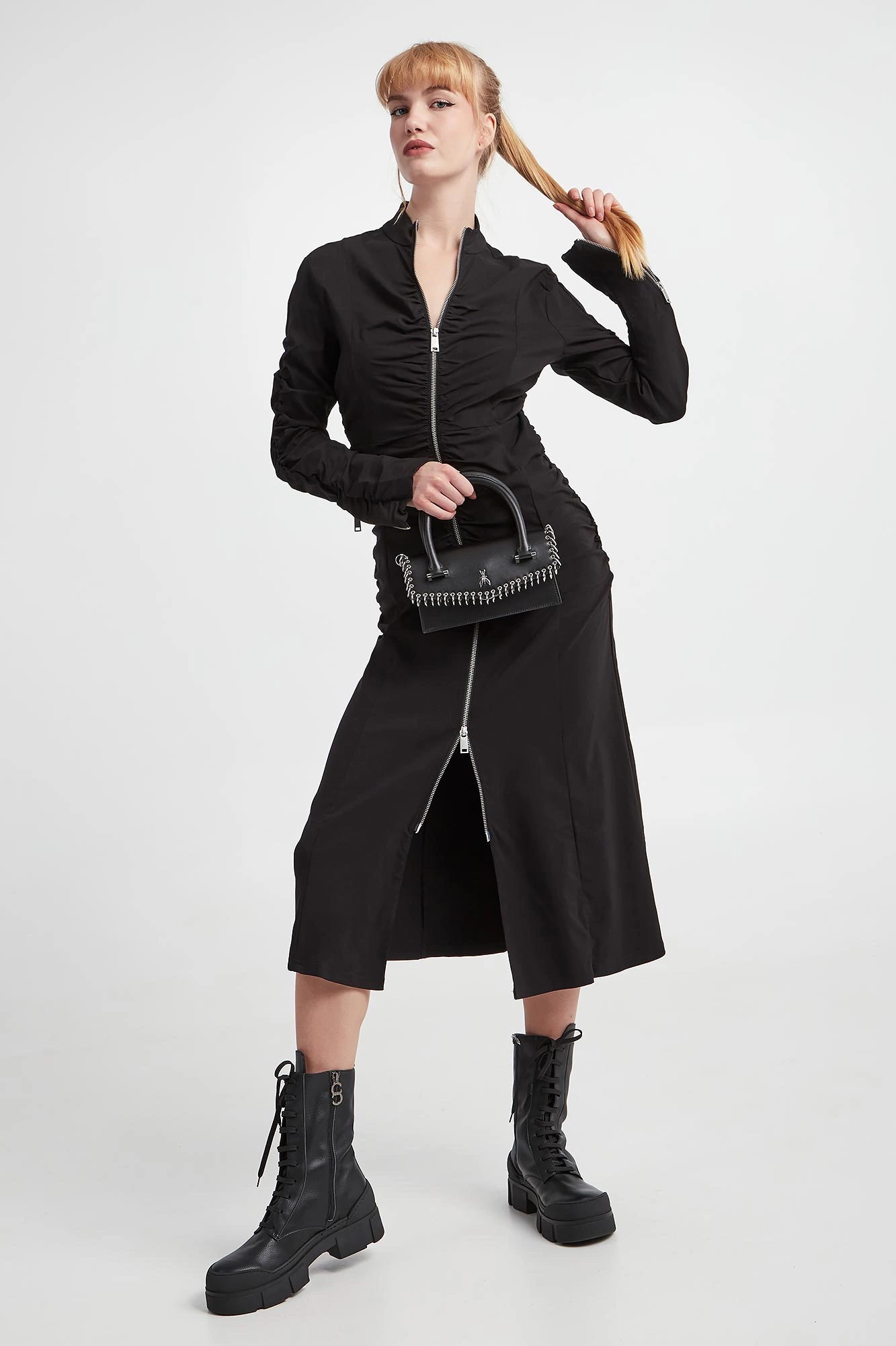 Modelka na zdjęciu, przy wzroście 178 cm, ma na sobie rozmiar 36.
