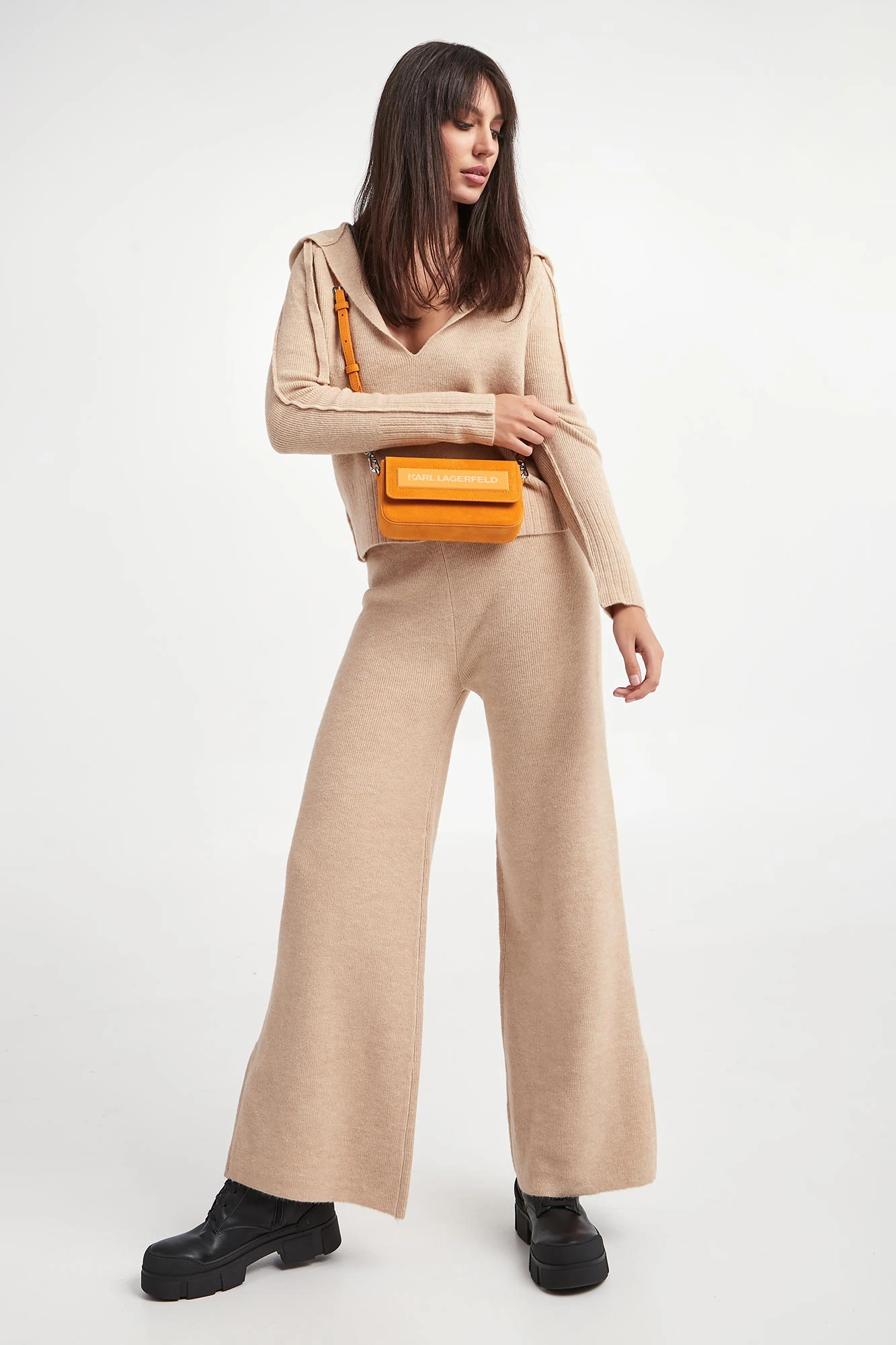 - Elastyczna swetrowa dzianina z dodatkiem wełny.