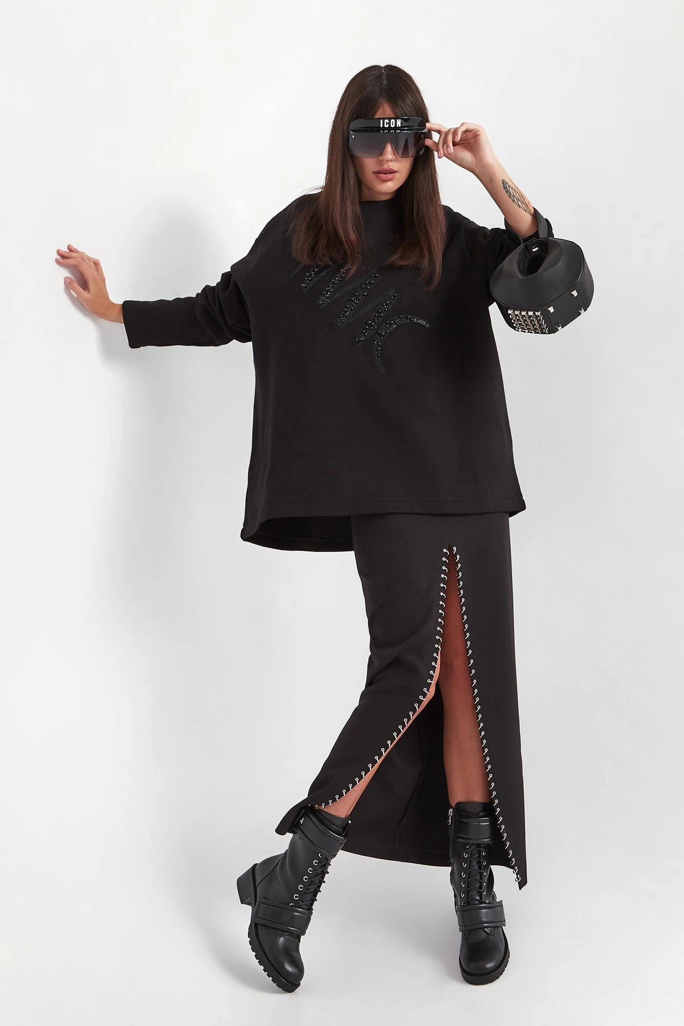 Modelka na zdjęciu, przy wzroście 177, ma na sobie rozmiar uniwersalny.