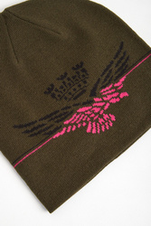- U dołu dwukolorowy wzór z logo z orlim motywem.