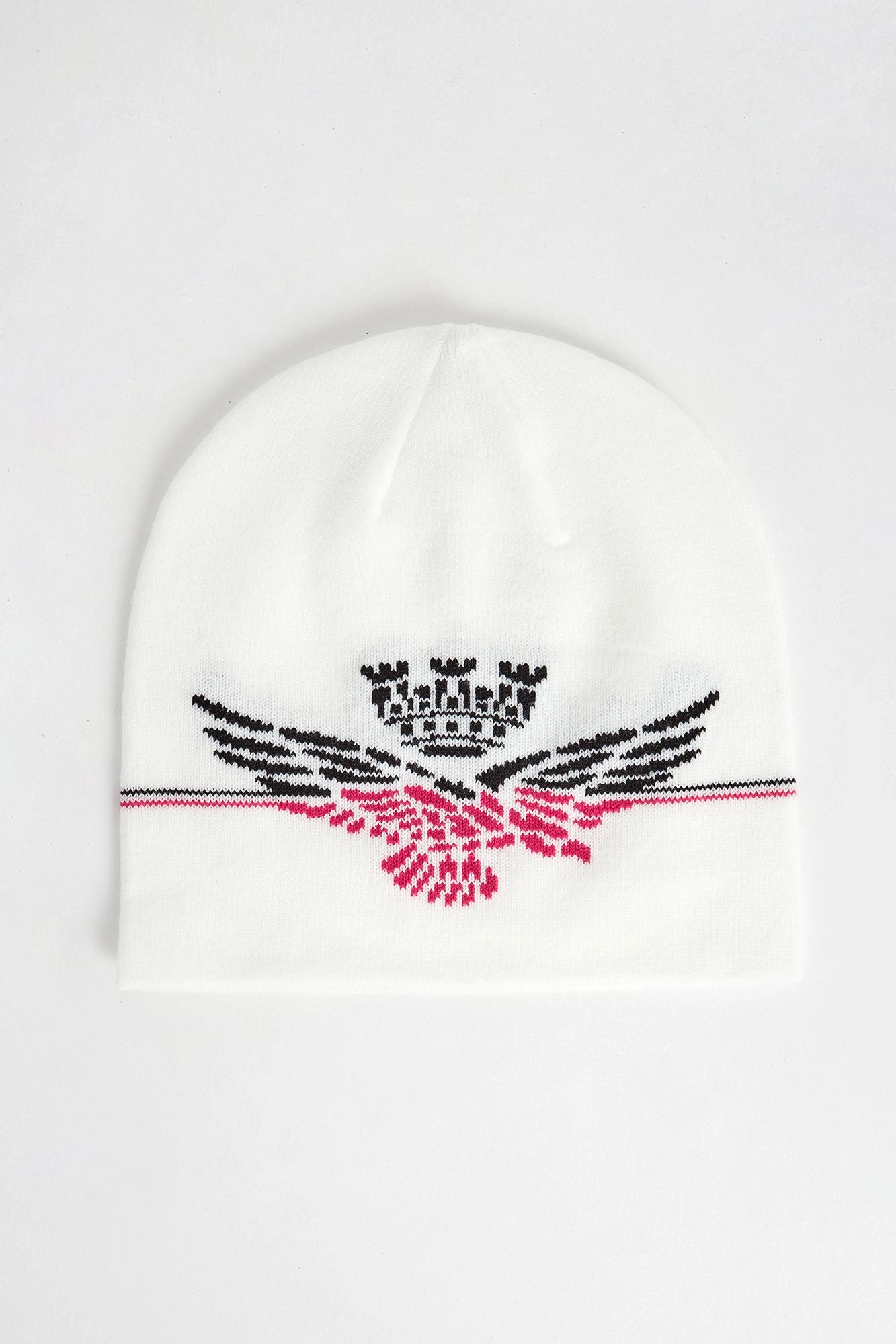 - U dołu dwukolorowy wzór z logo z orlim motywem.