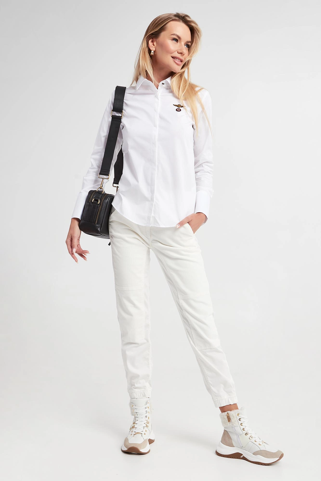 - Wykonana z bawełnianej tkaniny z domieszką elastanu.