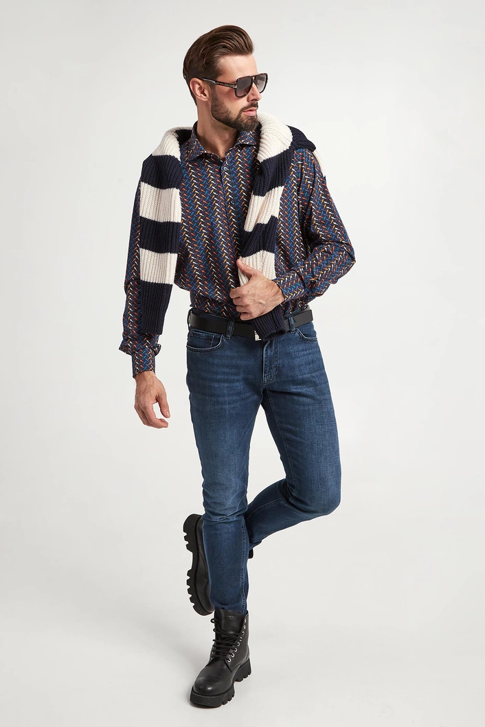Model na zdjęciu, przy wzroście 184 cm, ma na sobie rozmiar 42.