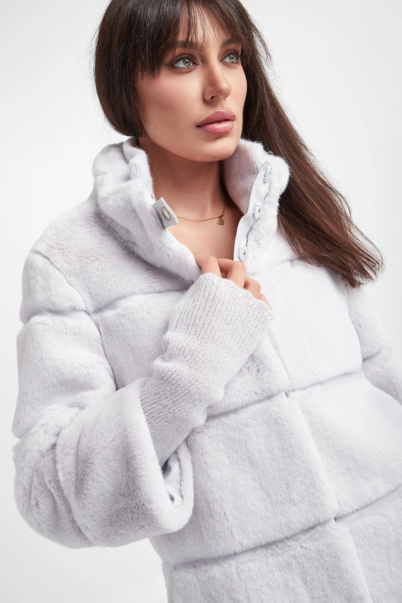 - Miękkie, syntetyczne futro z efektem pikowania.