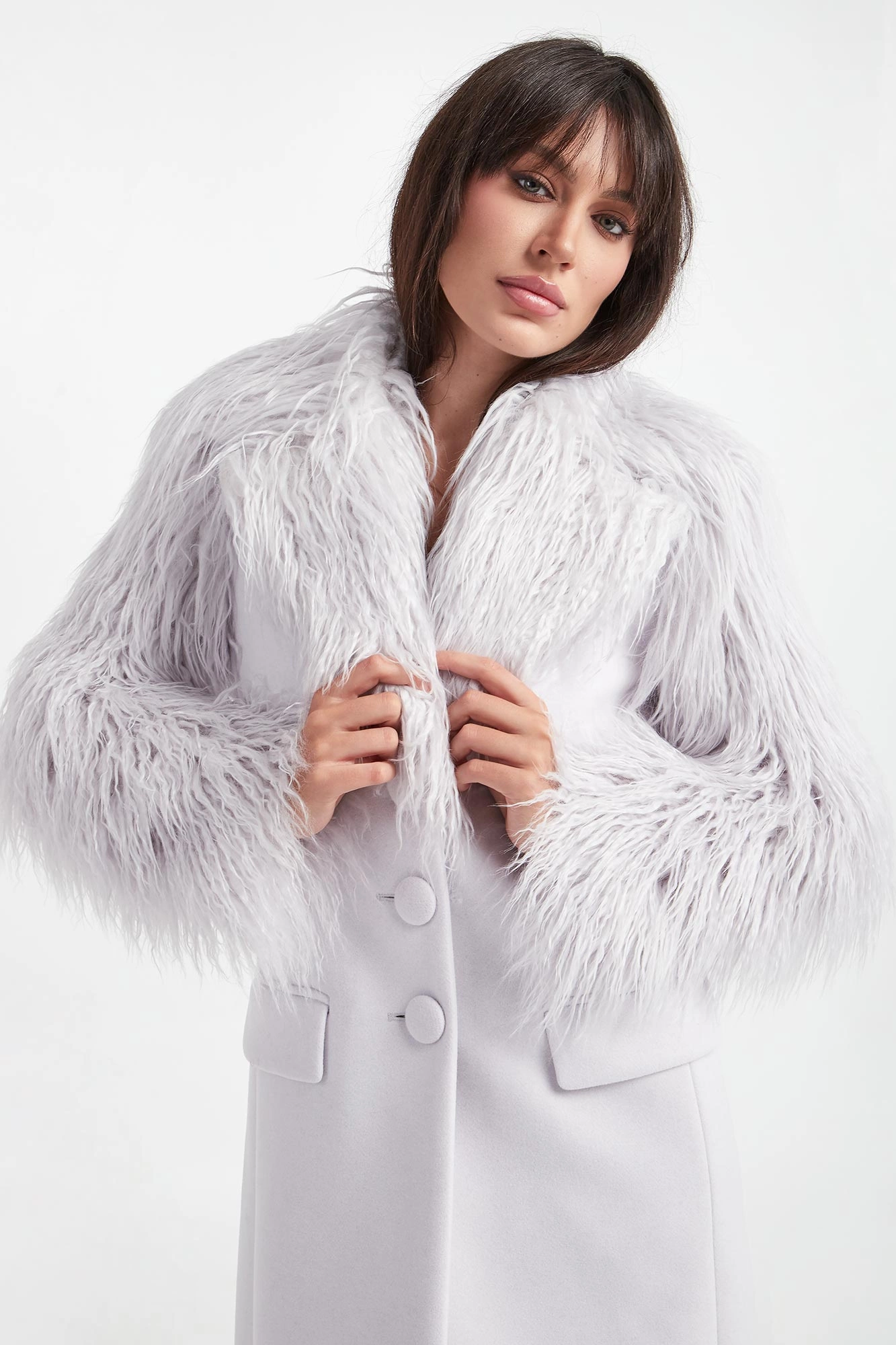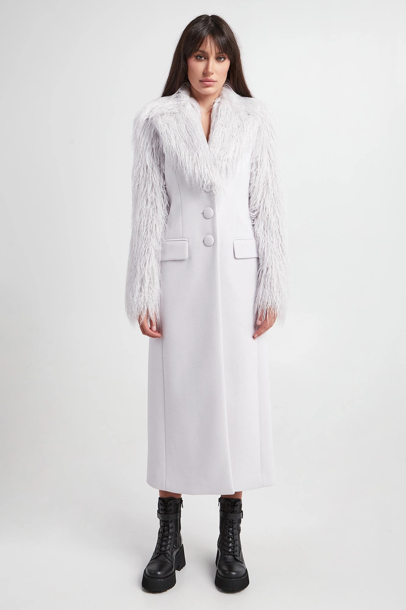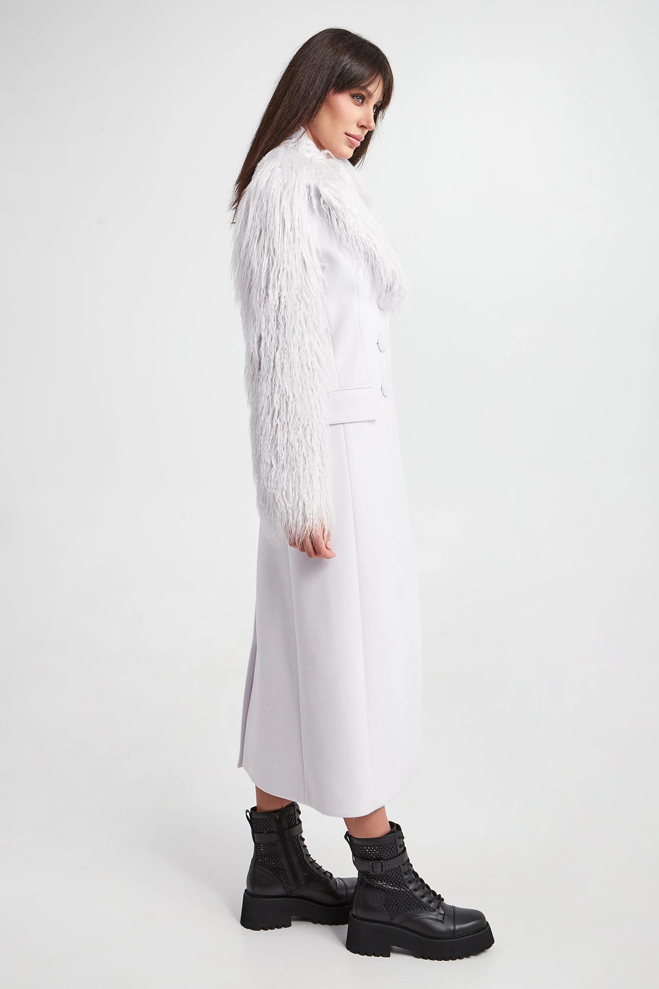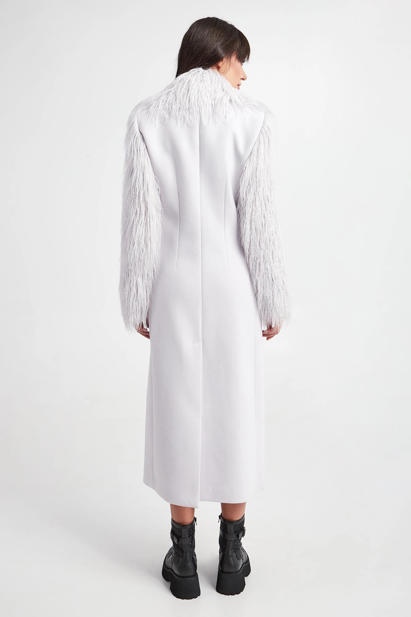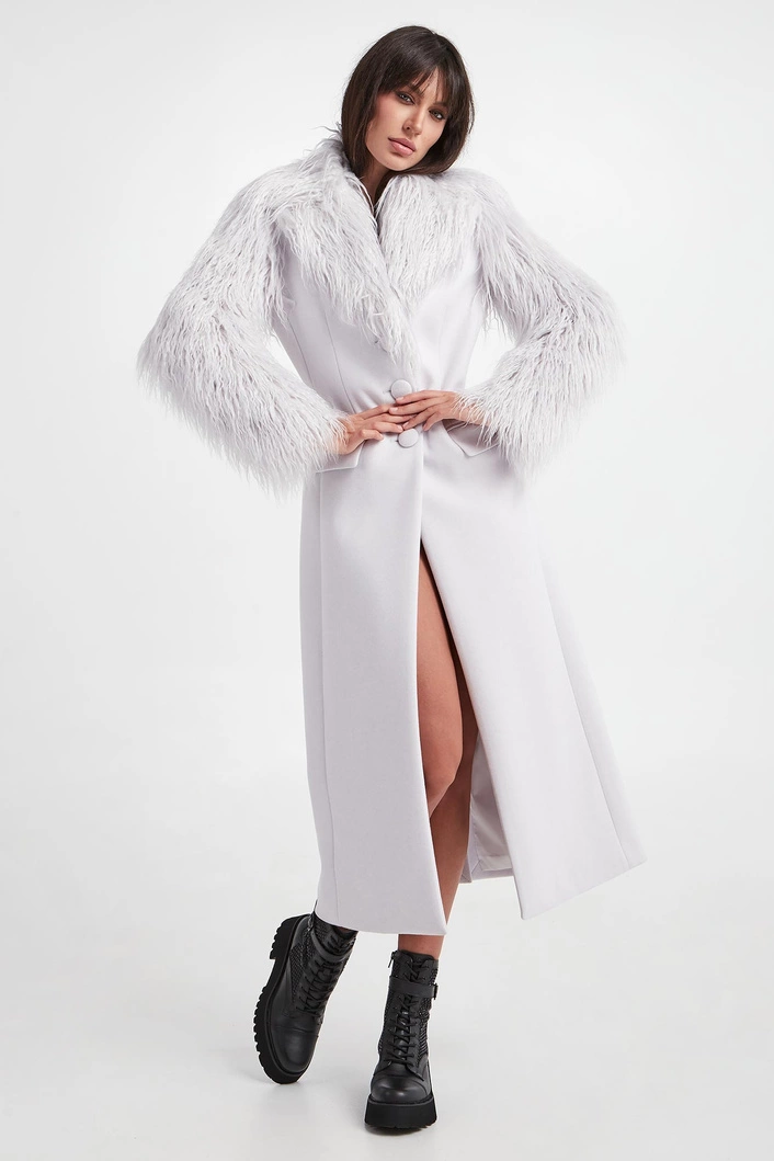 - Góra i rękawy ozdobiona syntetycznym futrem.