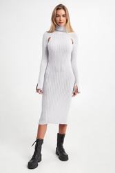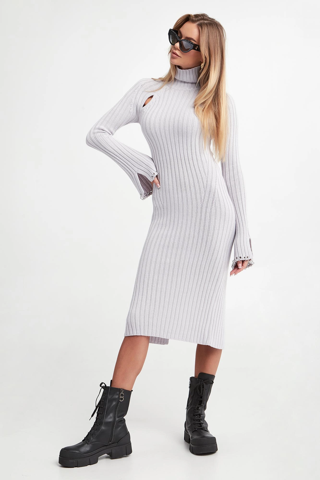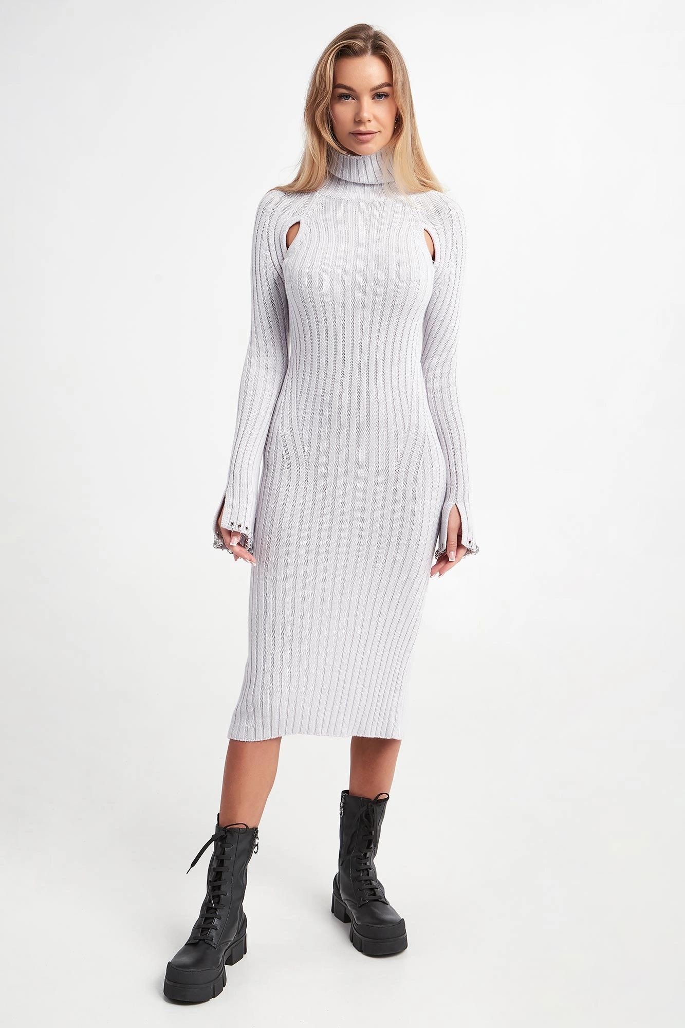 - Długie rękawy, rozszerzane wykończone zdobieniem w postaci piercingu.