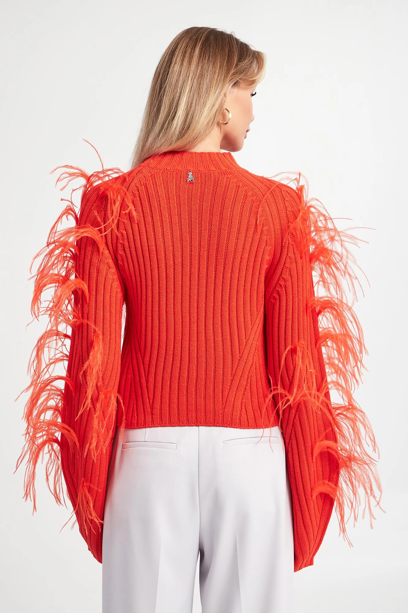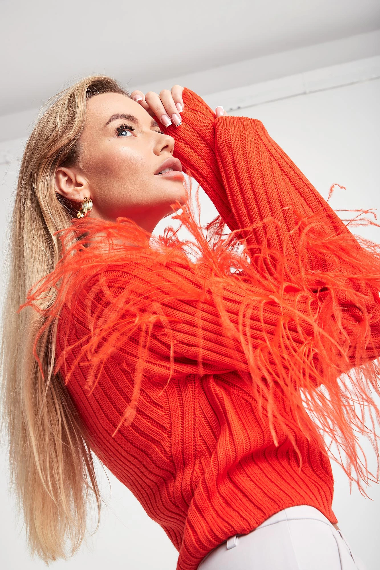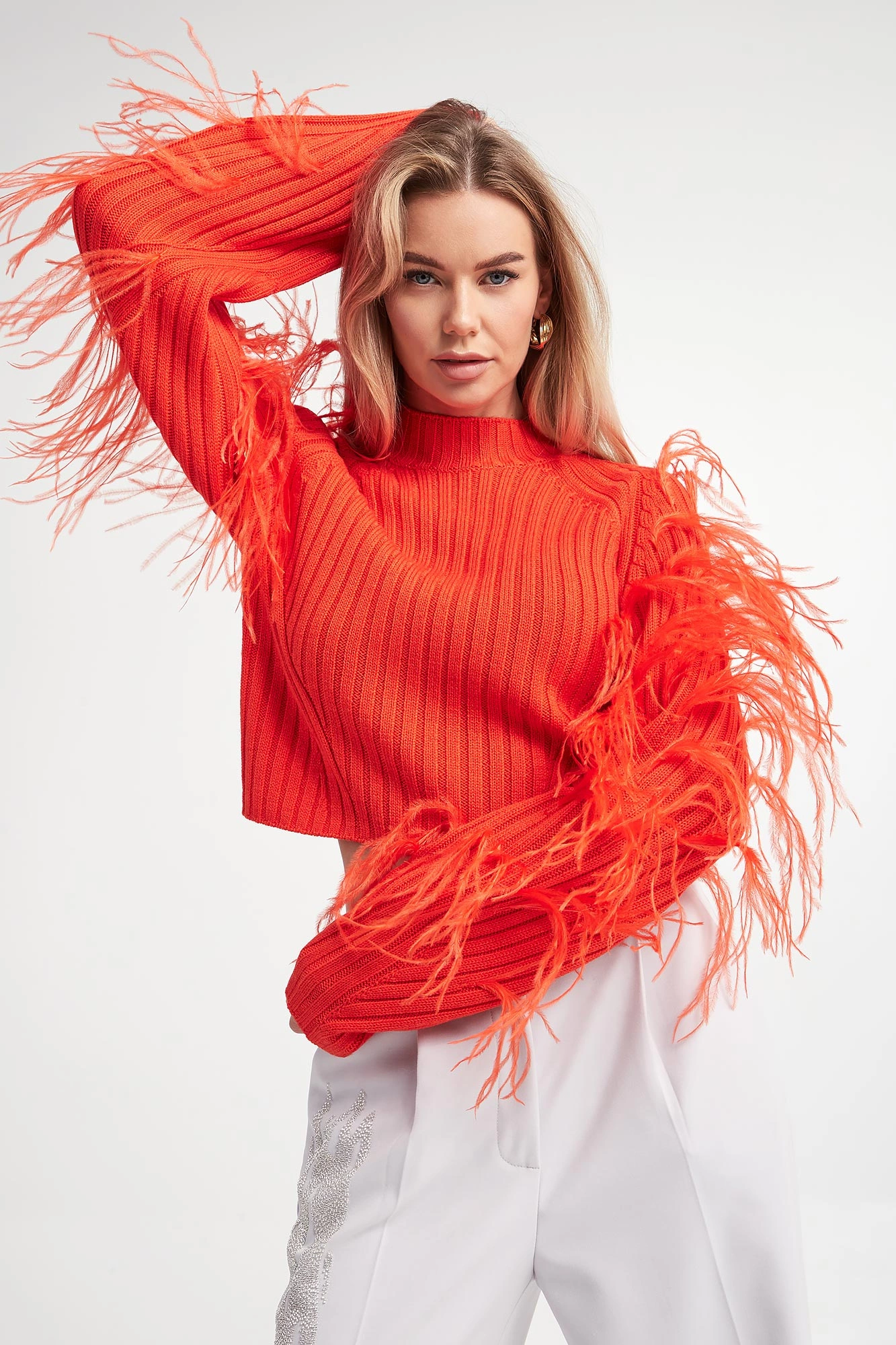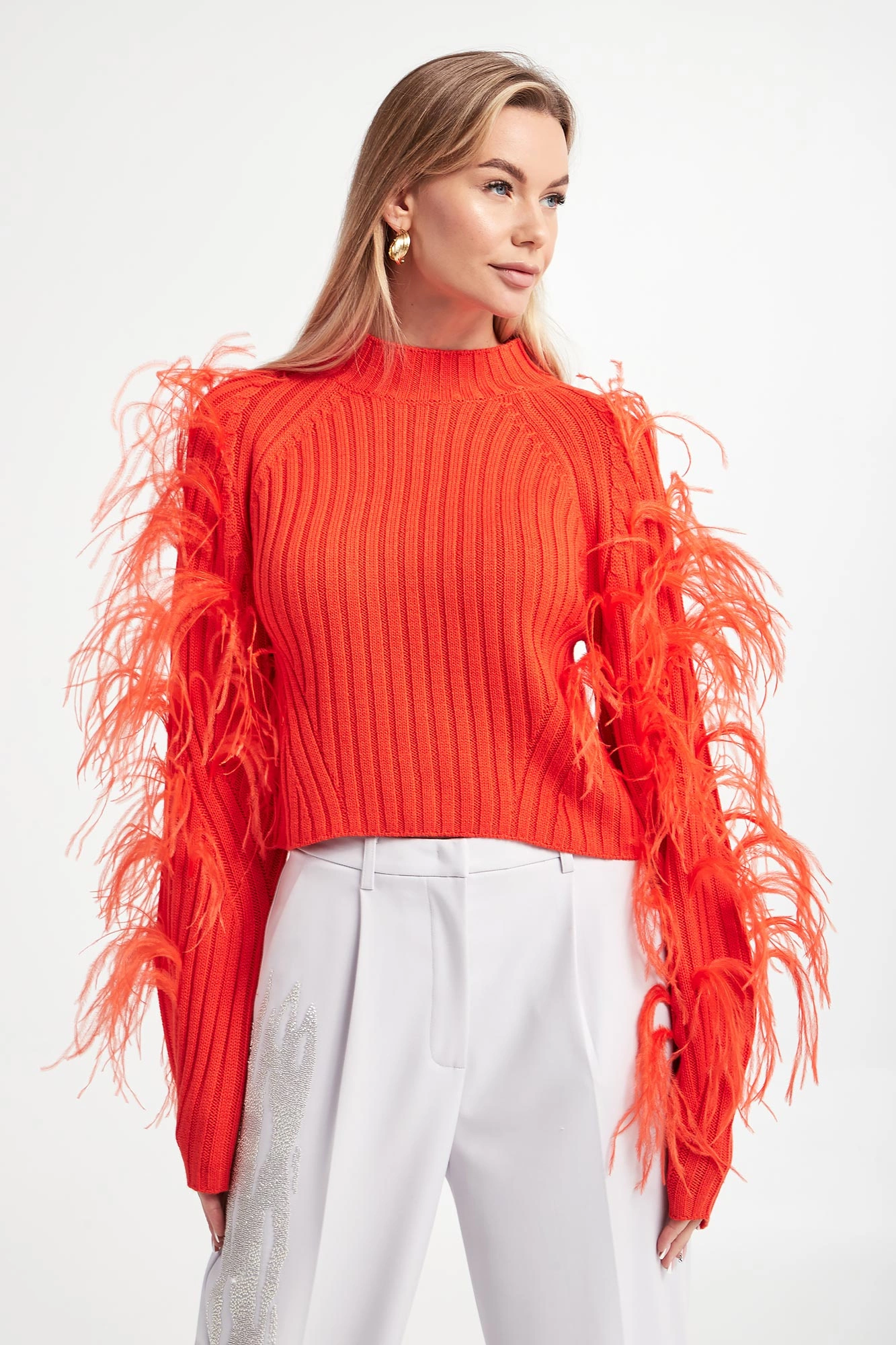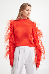 - Szerokie rękawy ze strusimi piórami.