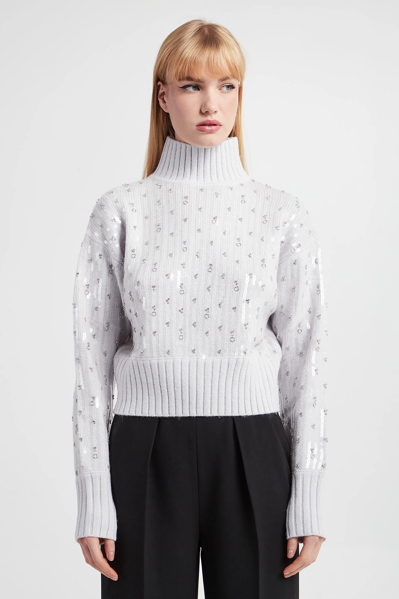 | Faktura: | Dzianina swetrowa Cekiny Cyrkonie |