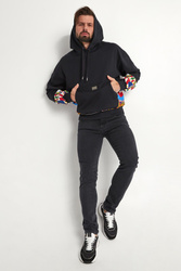 Model na zdjęciu, przy wzroście 184 cm, ma na sobie rozmiar 50.