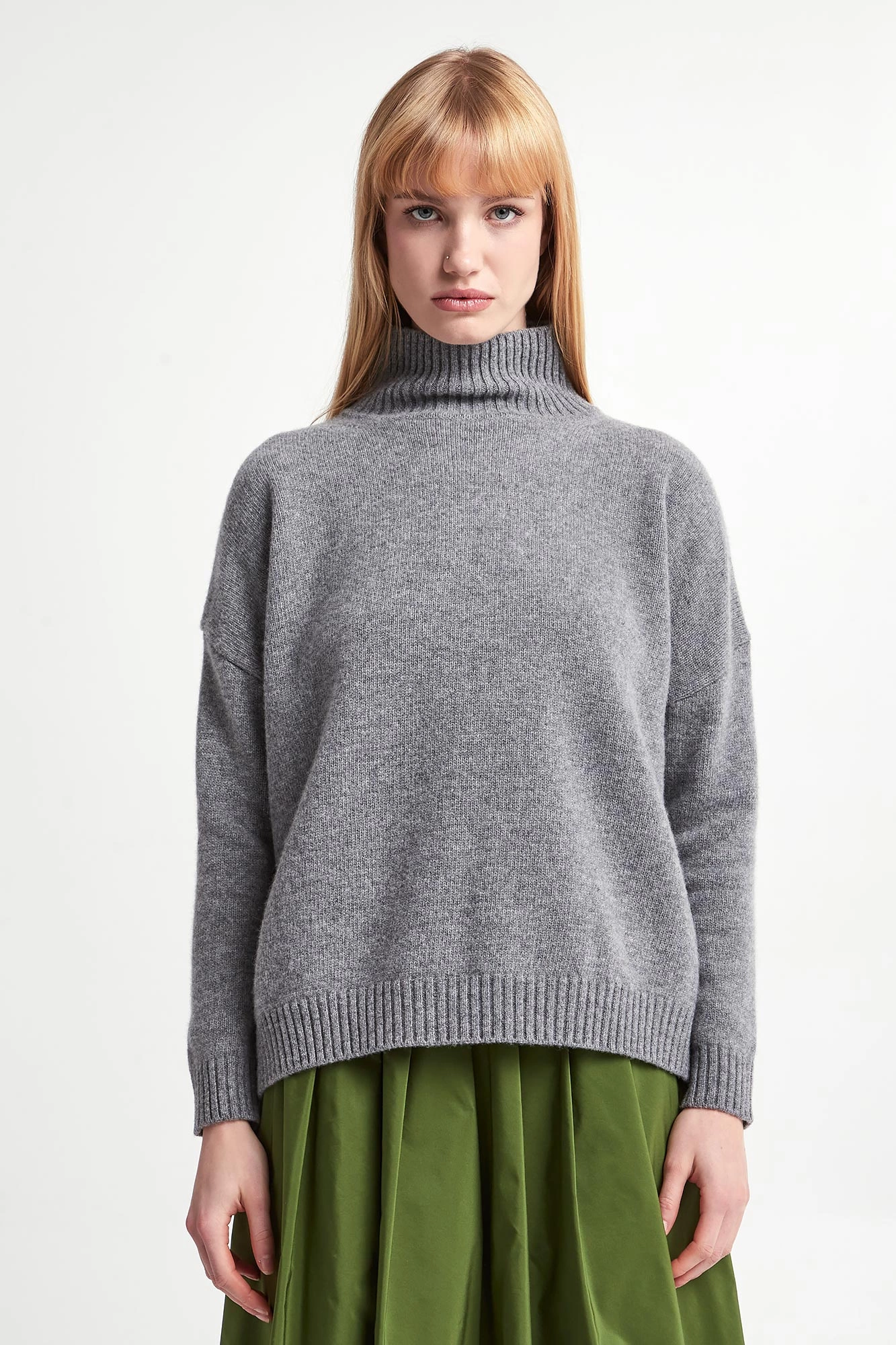 - Dekolt z prążkowanym golfem.