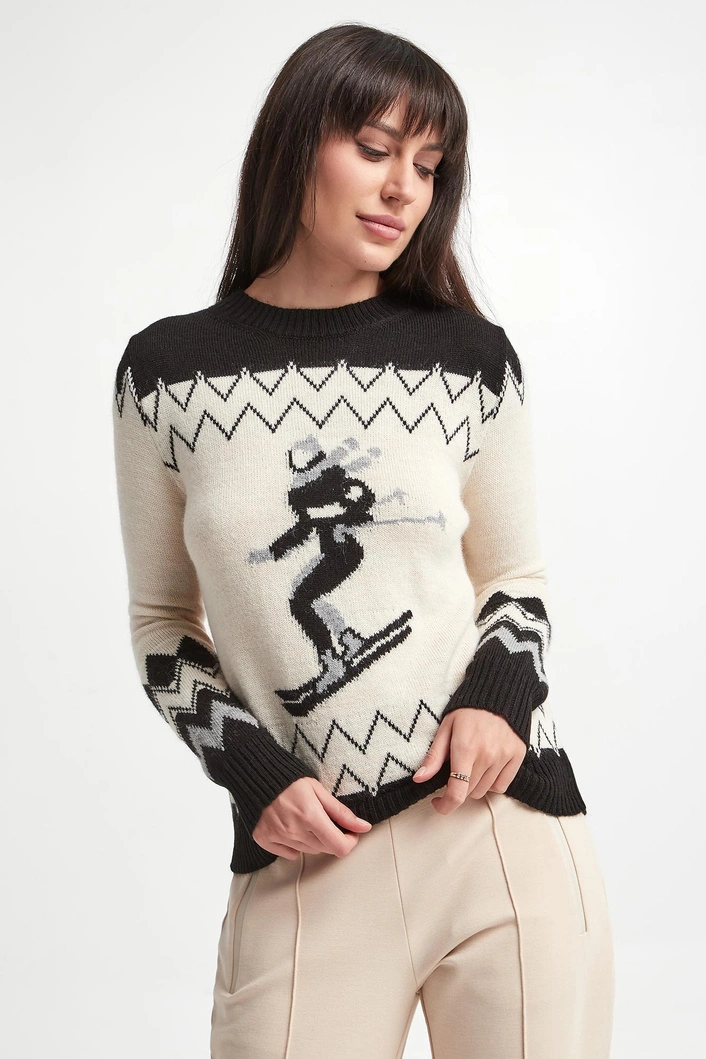 - Na całości czarny wzór z motywem narciarskim.