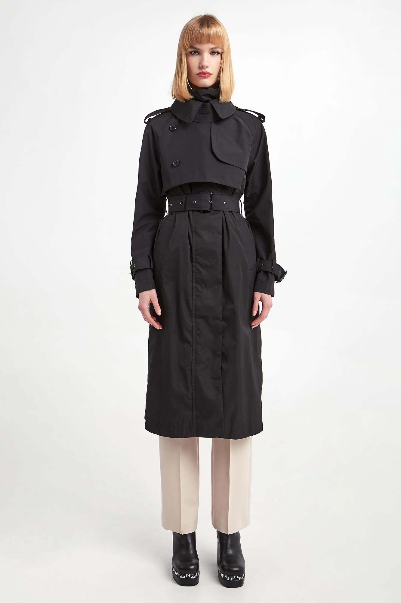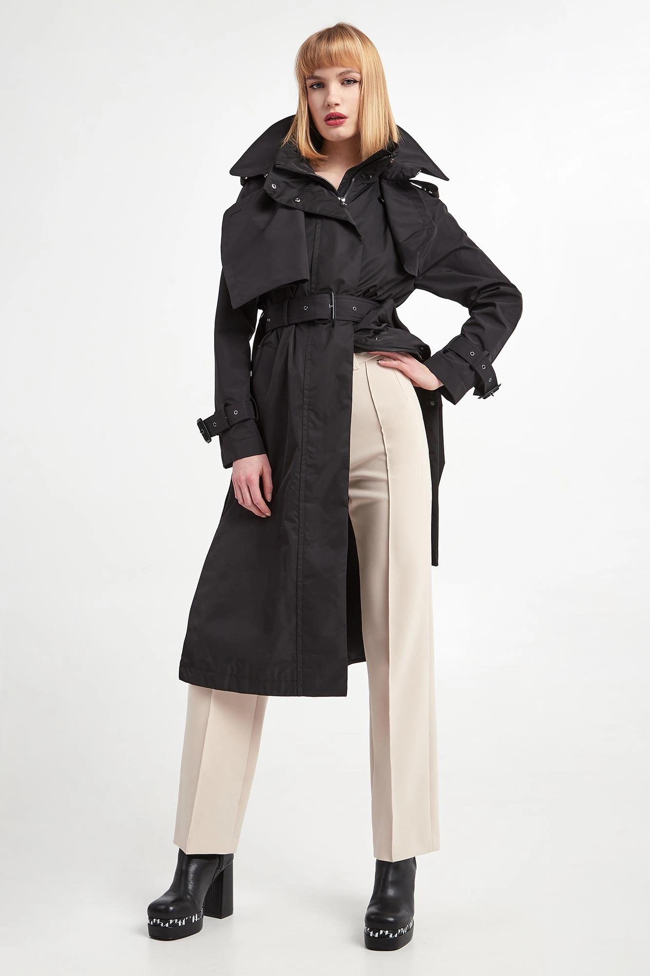 - Kołnierz zapinany za pomocą paska z guzikiem.
