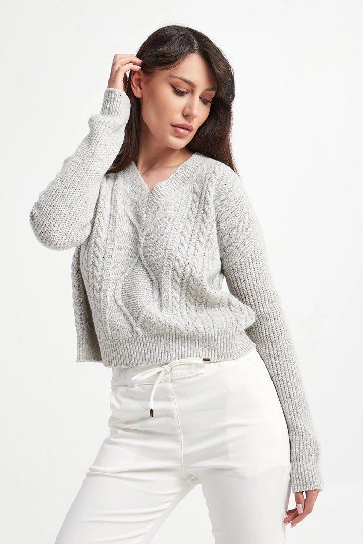 - Dekolt v-neck, rękawy i dół zakończone ściągaczami.