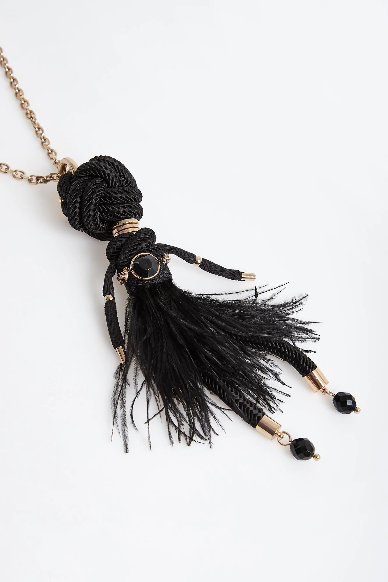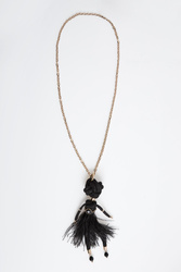 - Wykończony wiązaniem, piórkami oraz czarnymi kryształkami.