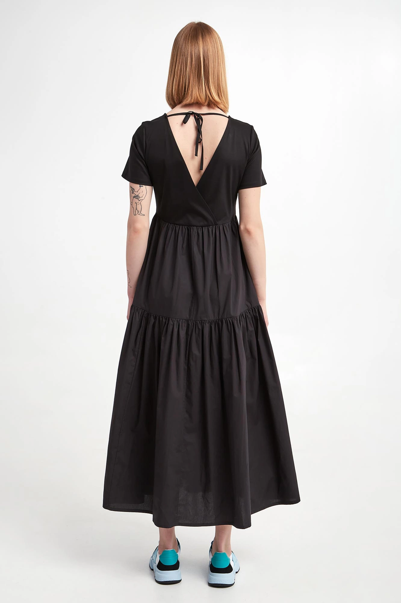 - Na plecach dekolt v-neck oraz wiązanie.