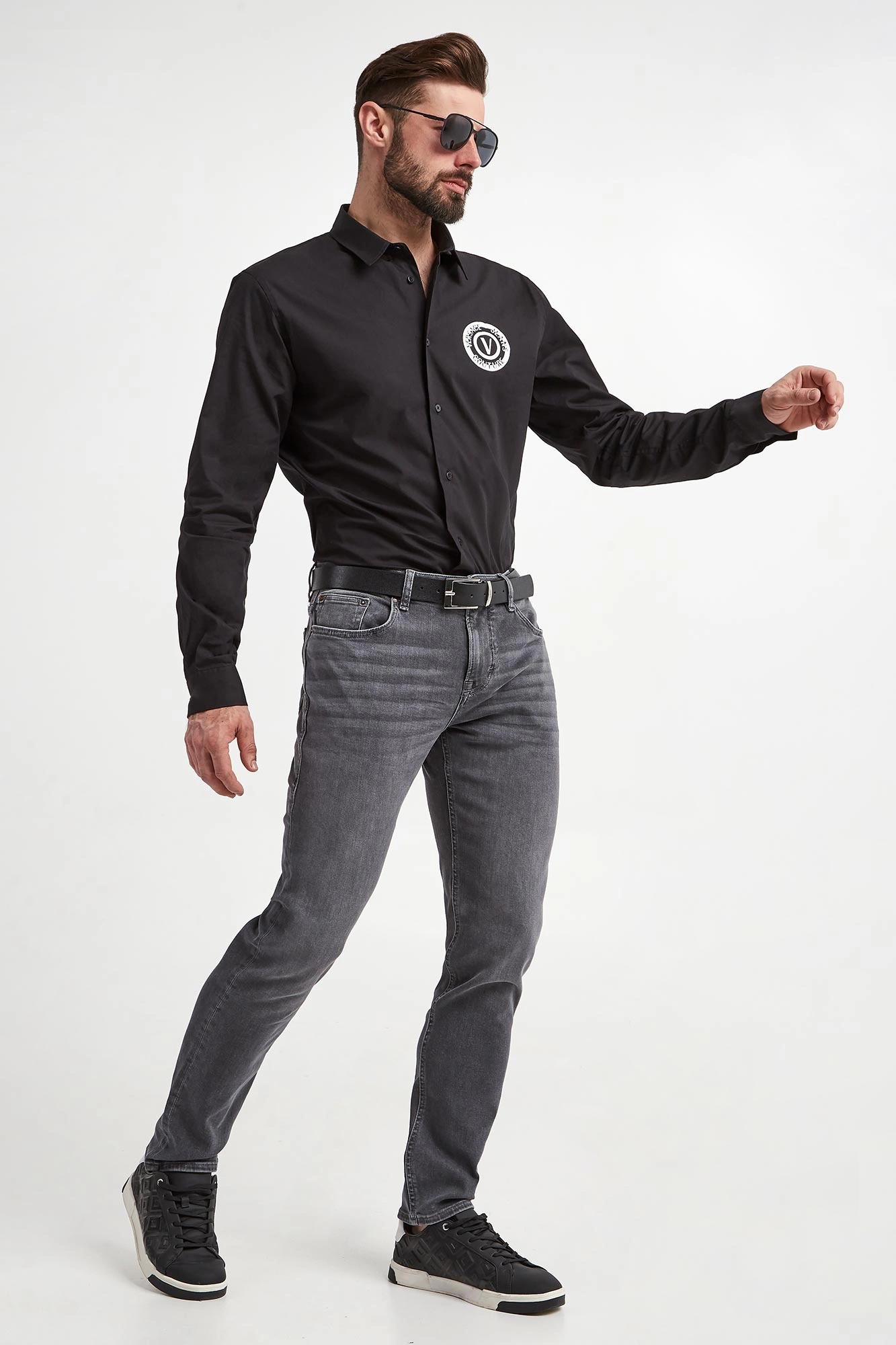 Model na zdjęciu, przy wzroście 184 cm, ma na sobie rozmiar 33/32.