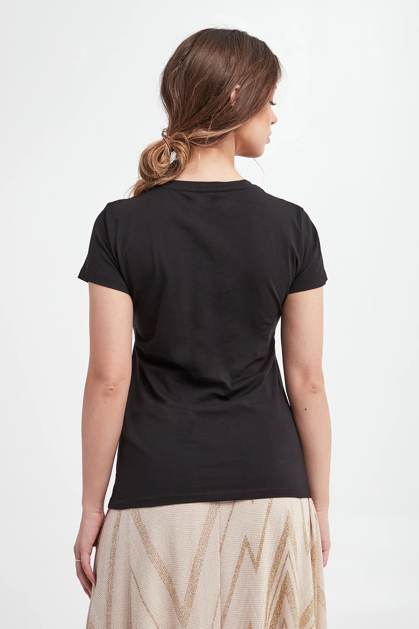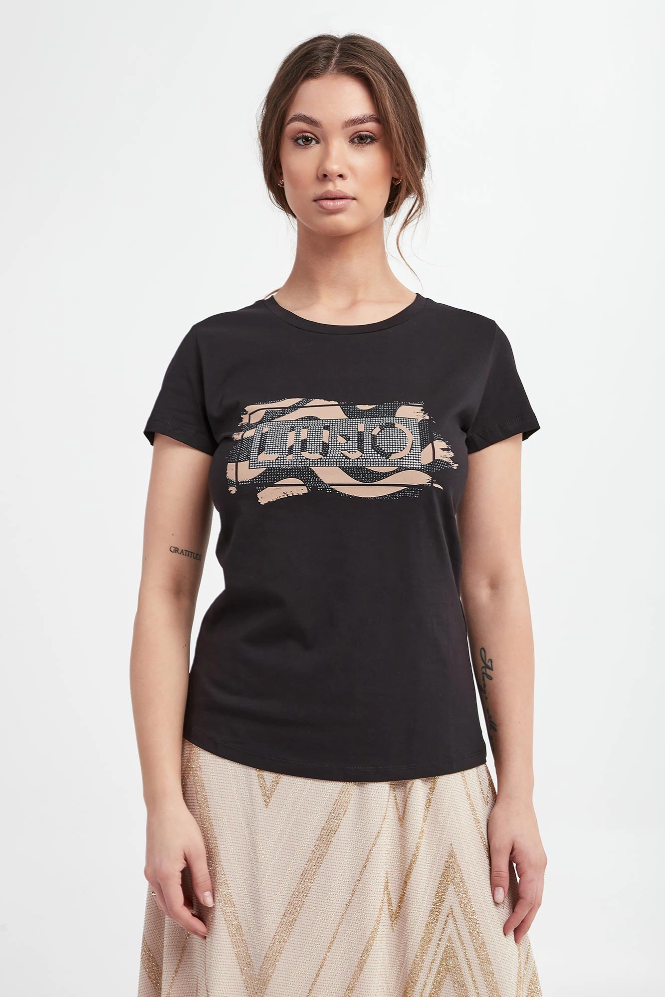 - Na froncie beżowy nadruk oraz logo ozdobione kryształkami.