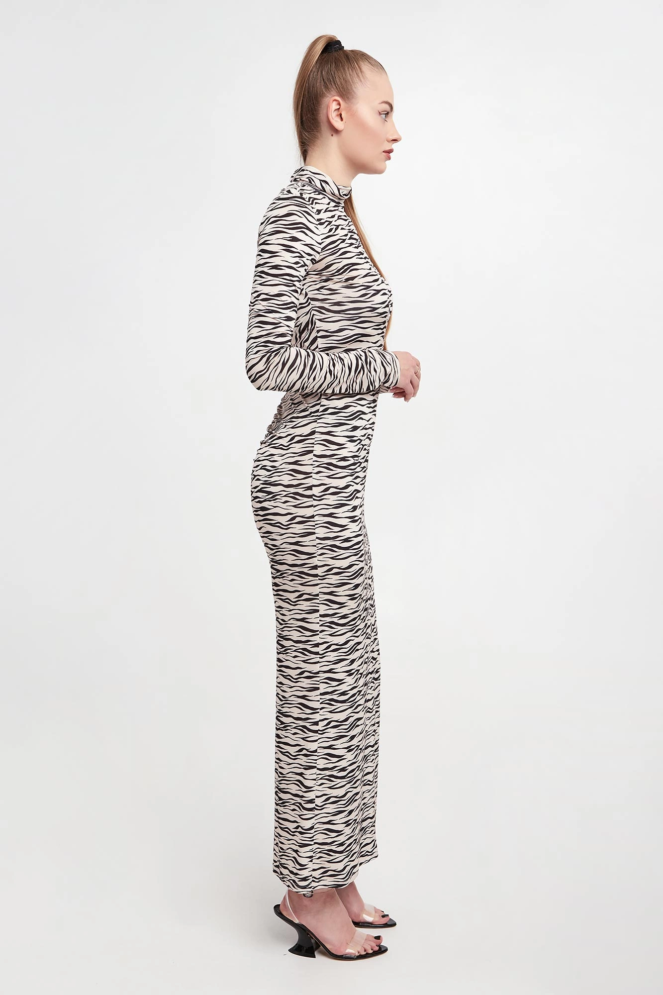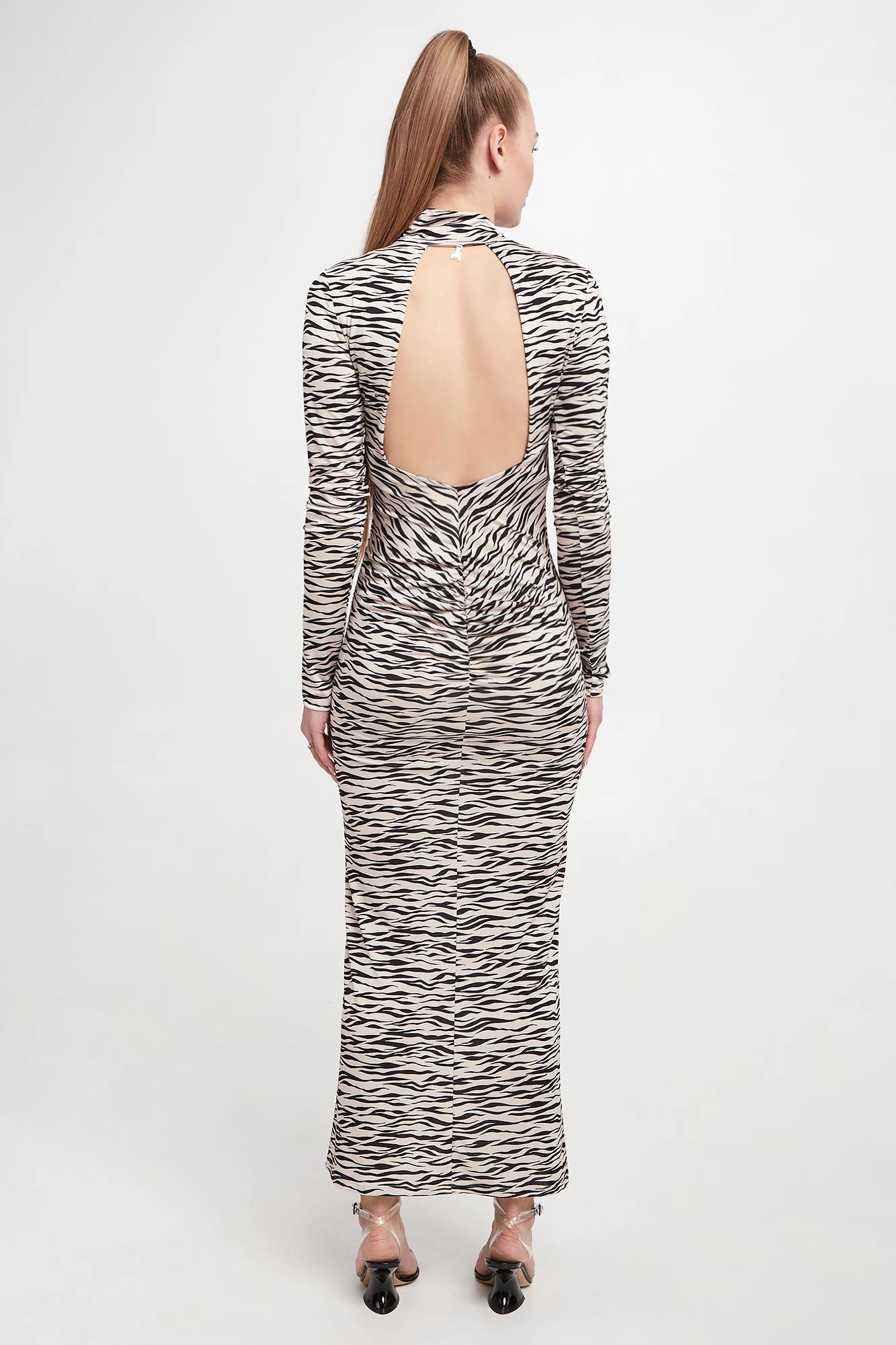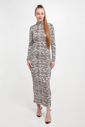 Modelka na zdjęciu, przy wzroście 178 cm, ma na sobie rozmiar 0, który jest odpowiednikiem polskiego rozmiaru XS.
