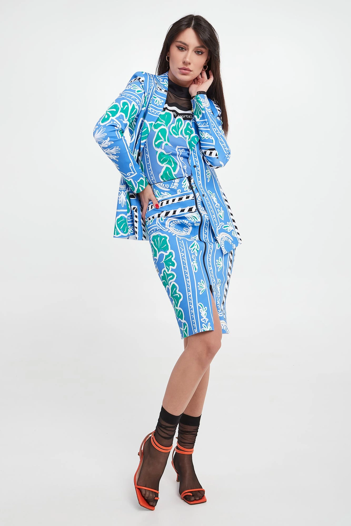 Modelka na zdjęciu, przy wzroście 177 cm, ma na sobie rozmiar 34.
