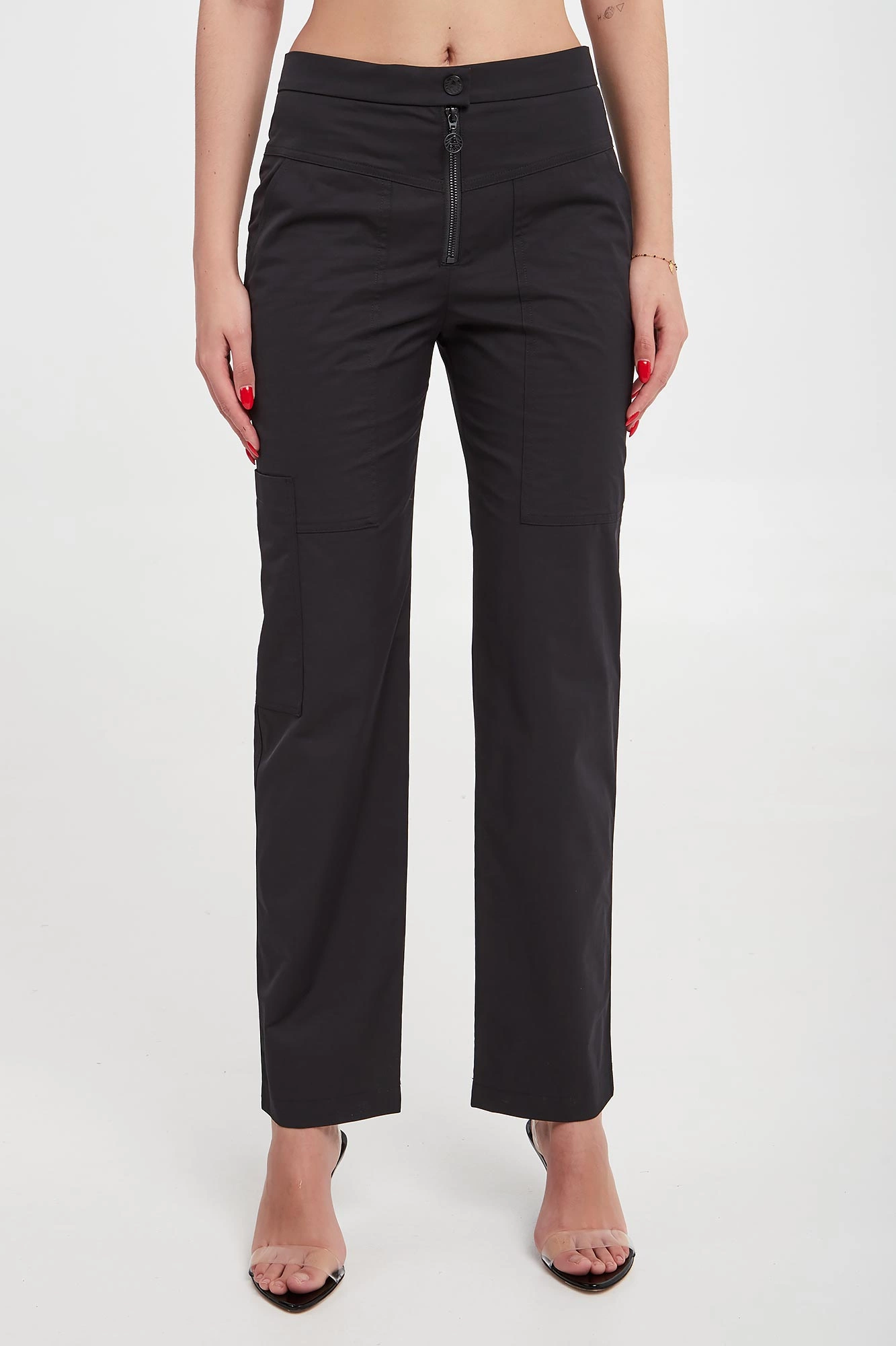 - Zapinane za pomocą logowanego zamka, guzika oraz haftki.