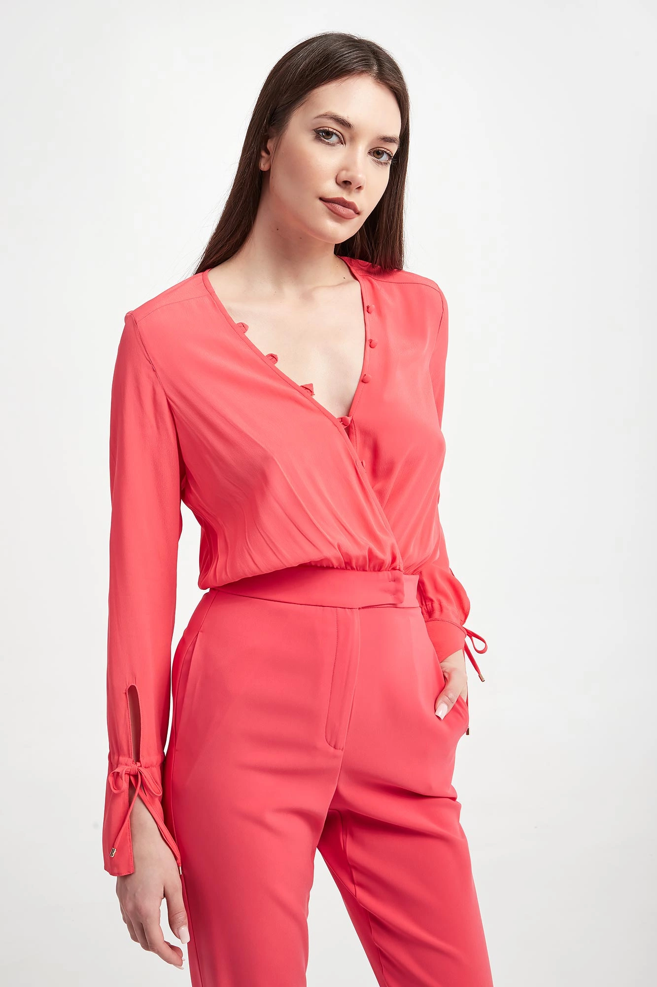 - Dekolt v-neck z guzikami.