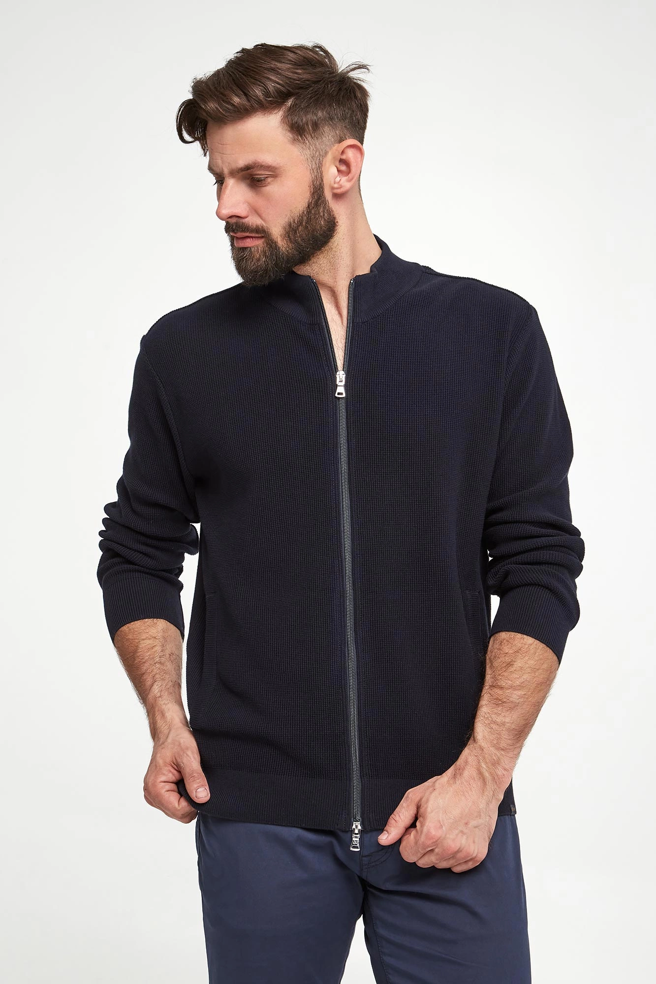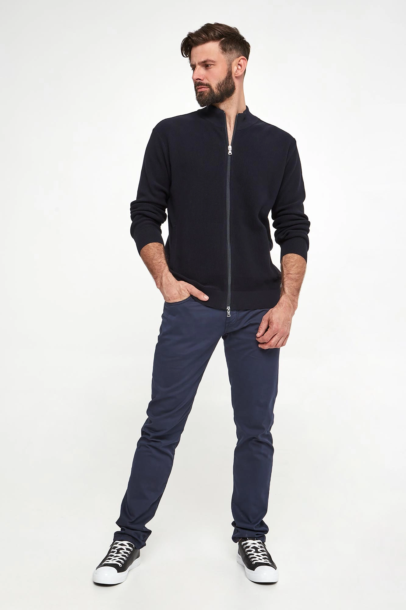 Model na zdjęciu, przy wzroście 184 cm, ma na sobie rozmiar 50.