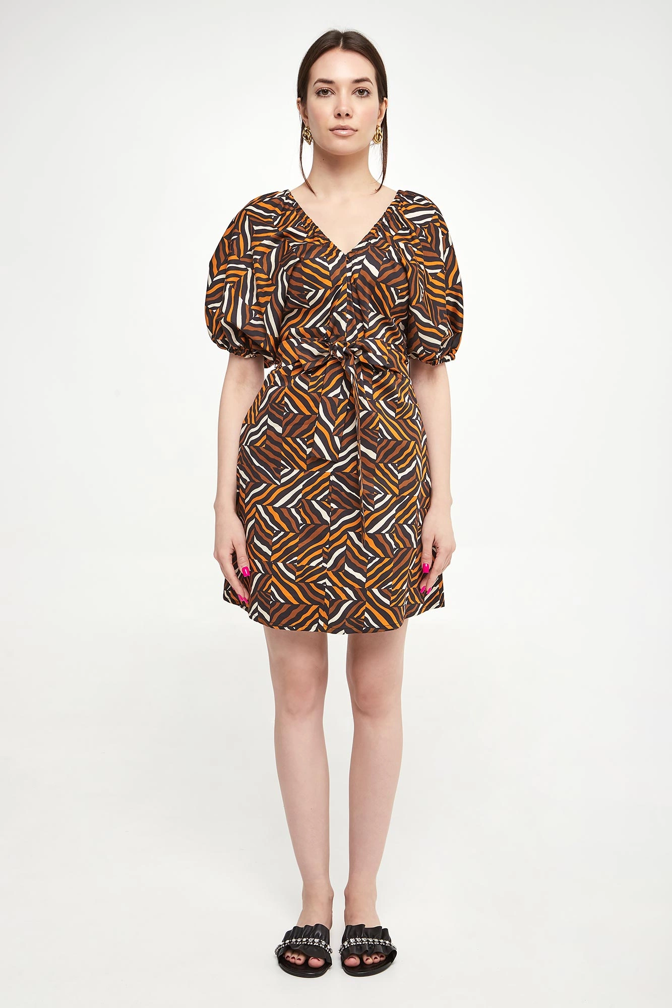- Krótkie bufiaste rękawy.