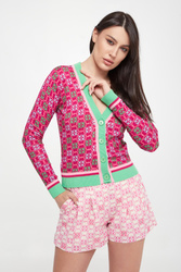 - Dekolt v-neck, ramiona i dół wykończone zielonymi ściągaczami.