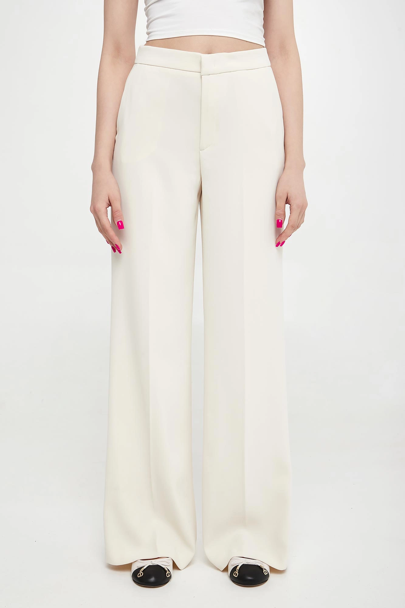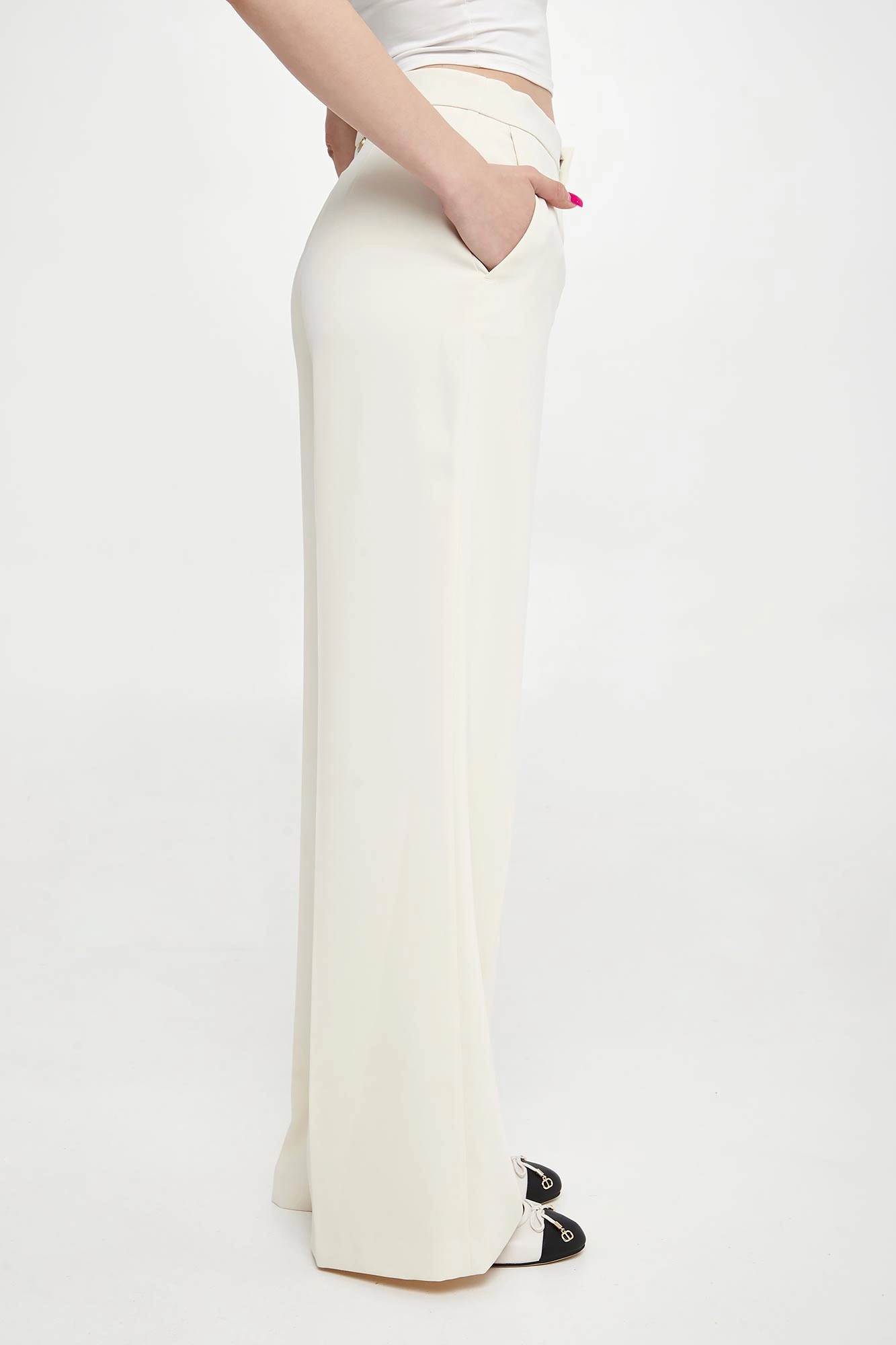 - Szerokie nogawki z kantem.