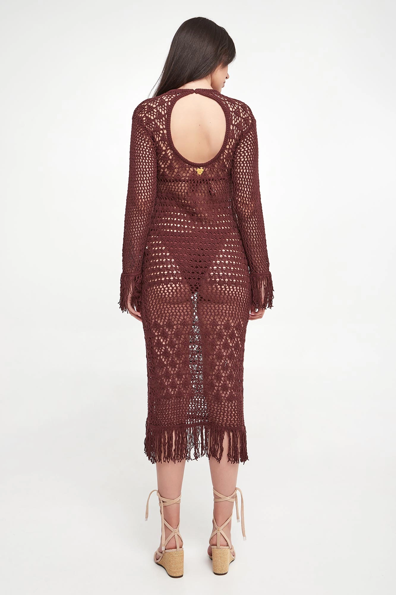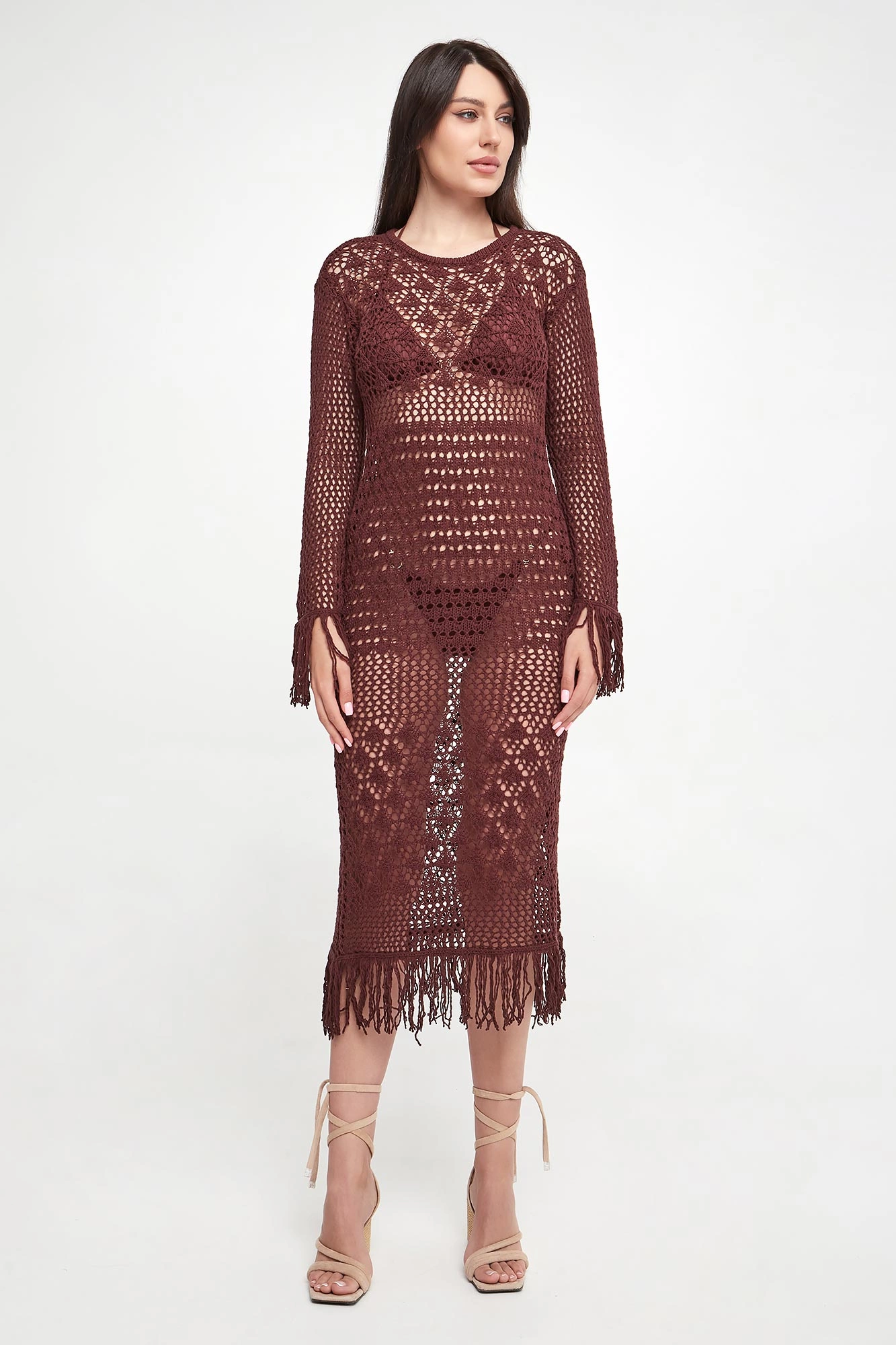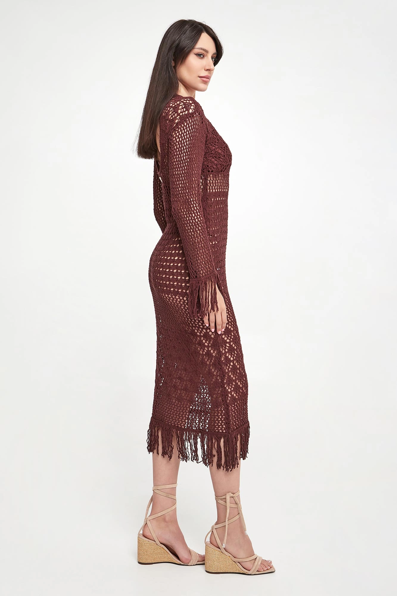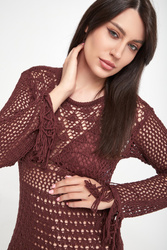 - Rękawy i dół zakończone frędzlami.