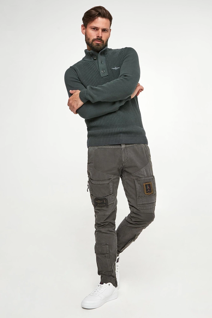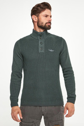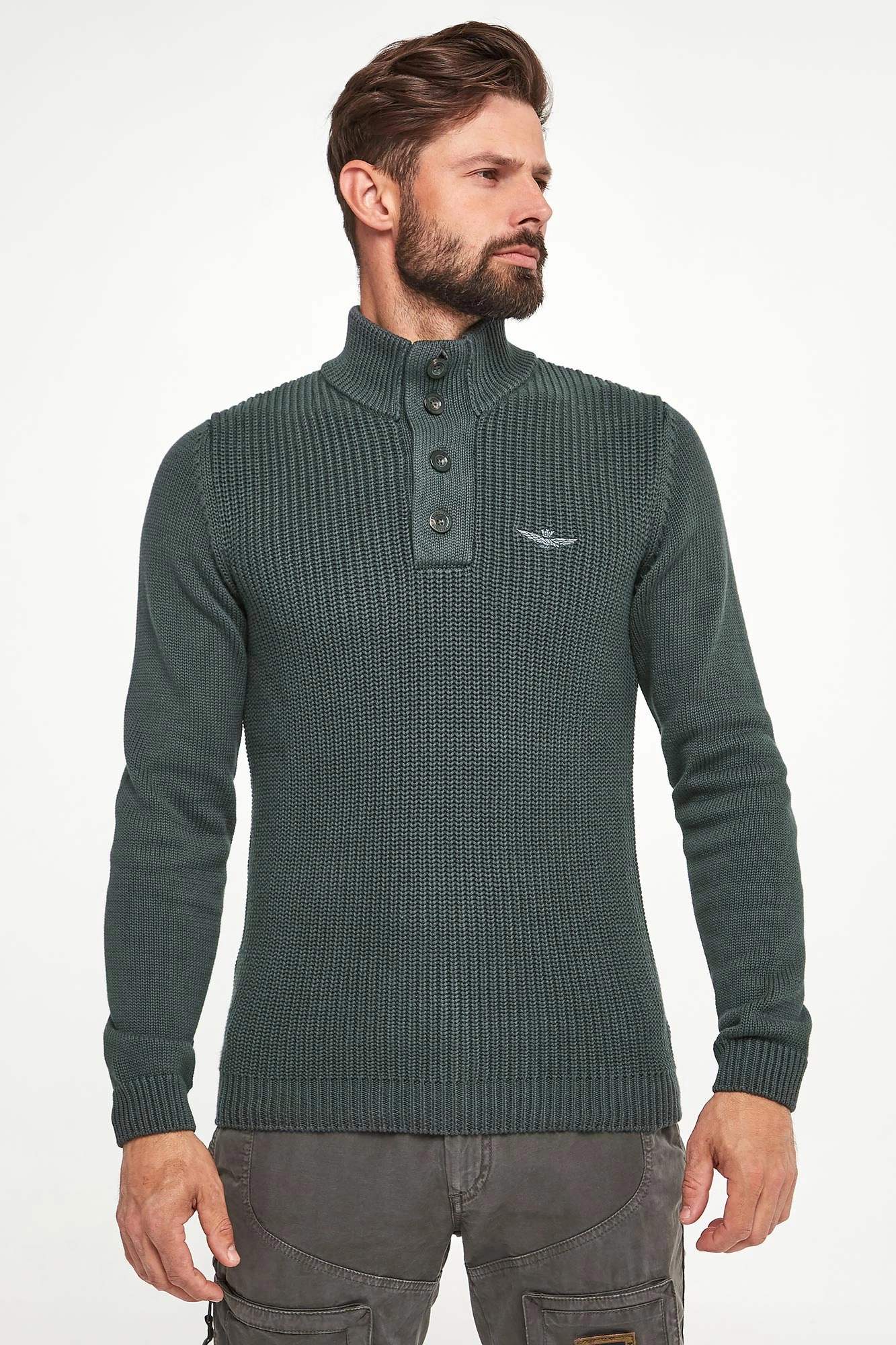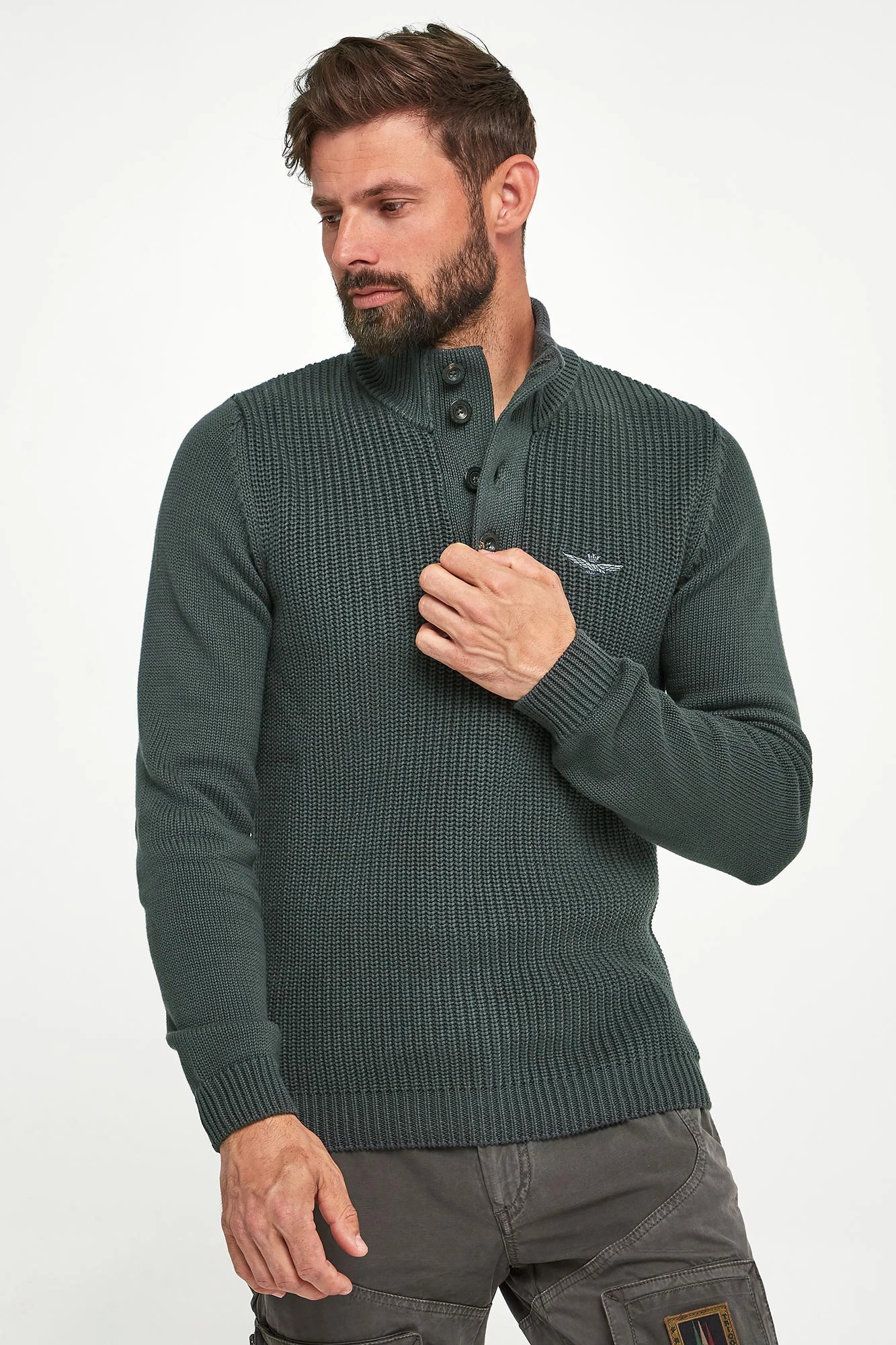 - Dekolt z półgolfem zapinany za pomocą guzików.