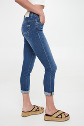Rozmiar | Szerokość w talii [cm] | Szerokość w biodrach [cm] | Szerokość nogawki na dole [cm] | Wysokość stanu mierzona z przodu [cm] | Długość całkowita [cm] | Długość wewnętrzna nogawki [cm] |