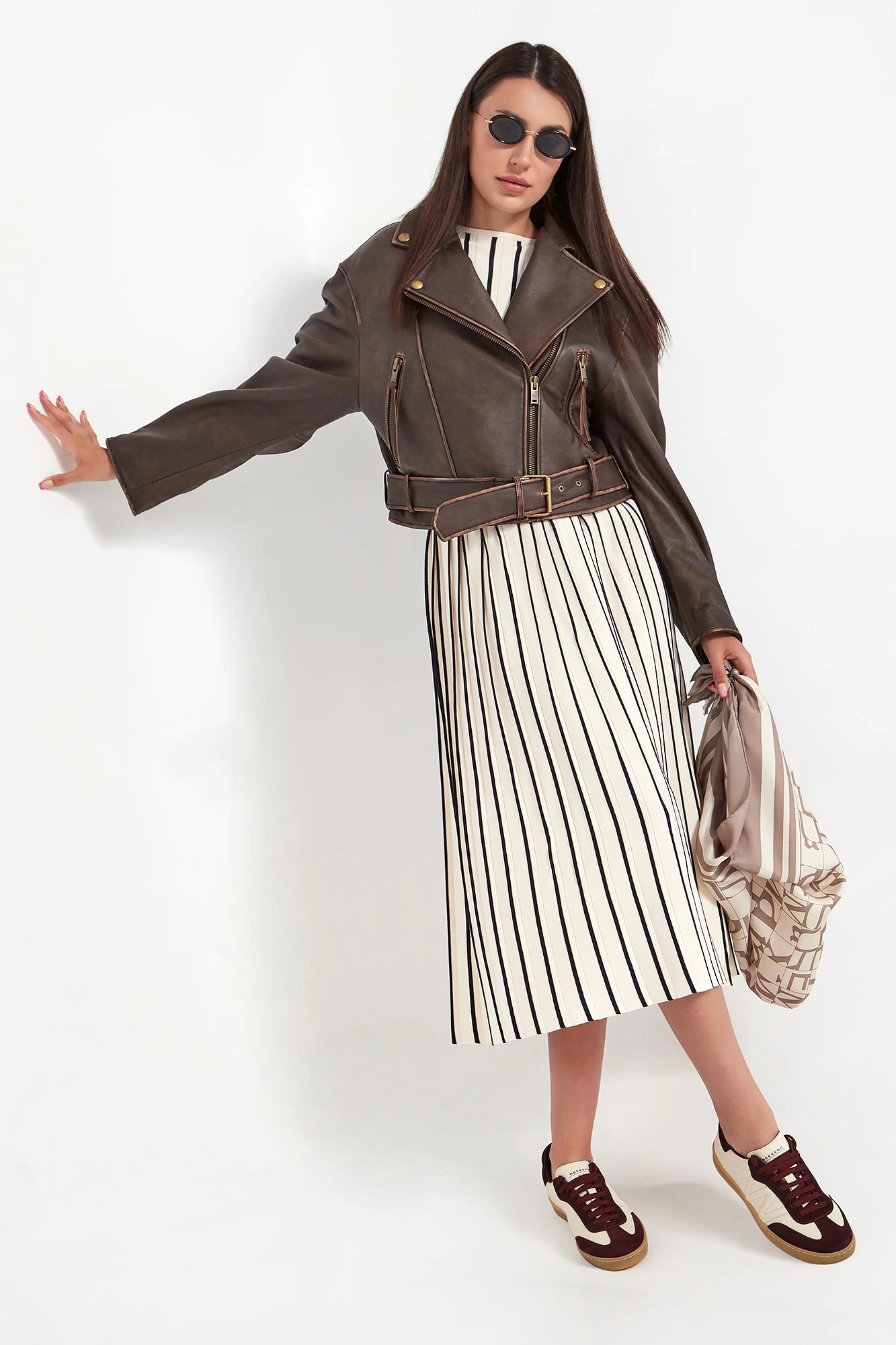 Modelka na zdjęciu, przy wzroście 177 cm, ma na sobie włoski rozmiar 38, który odpowiada polskiemu rozmiarowi 34.