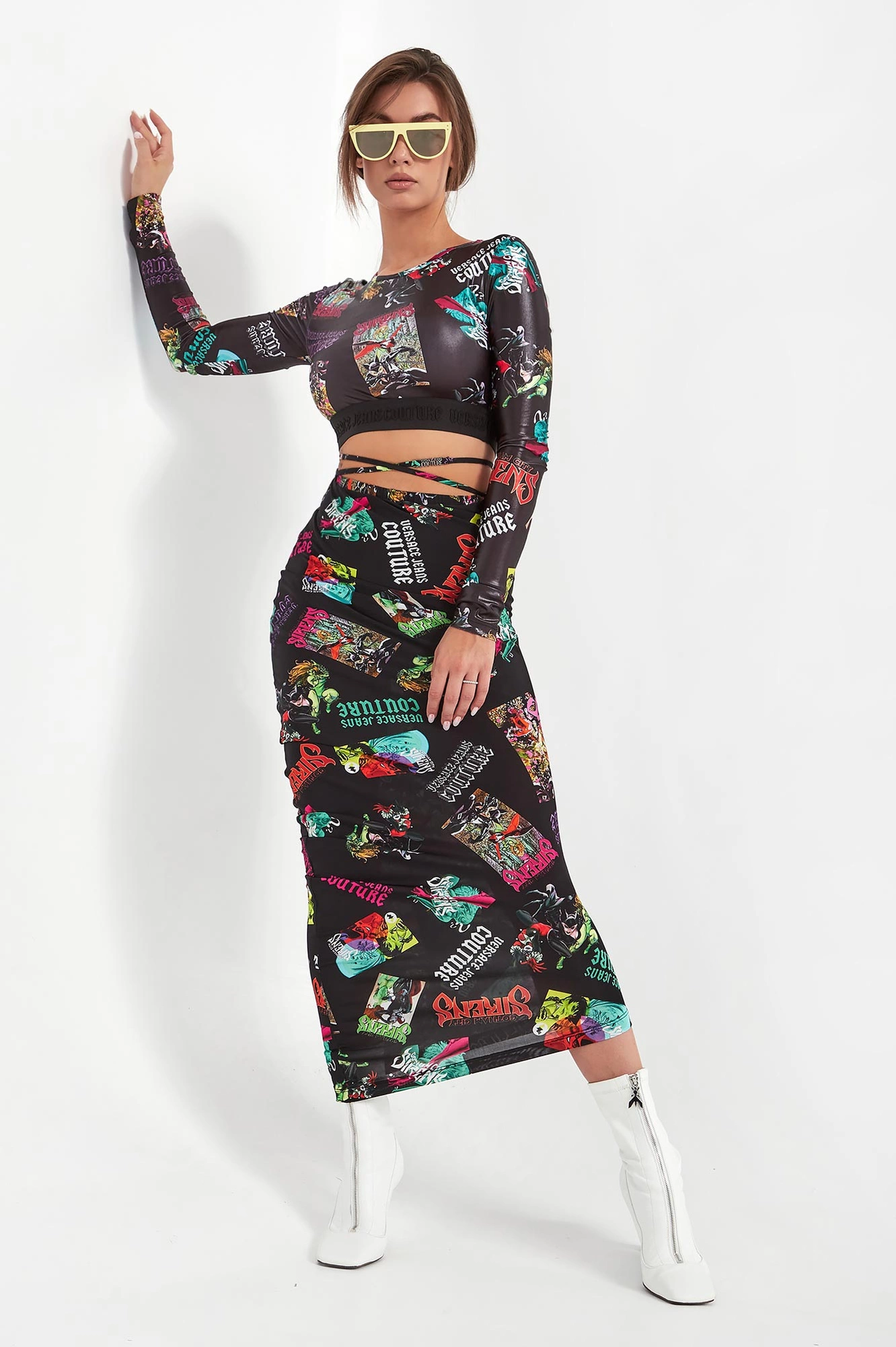 - Wielokolorowy wzór z motywem superbohaterów DC.