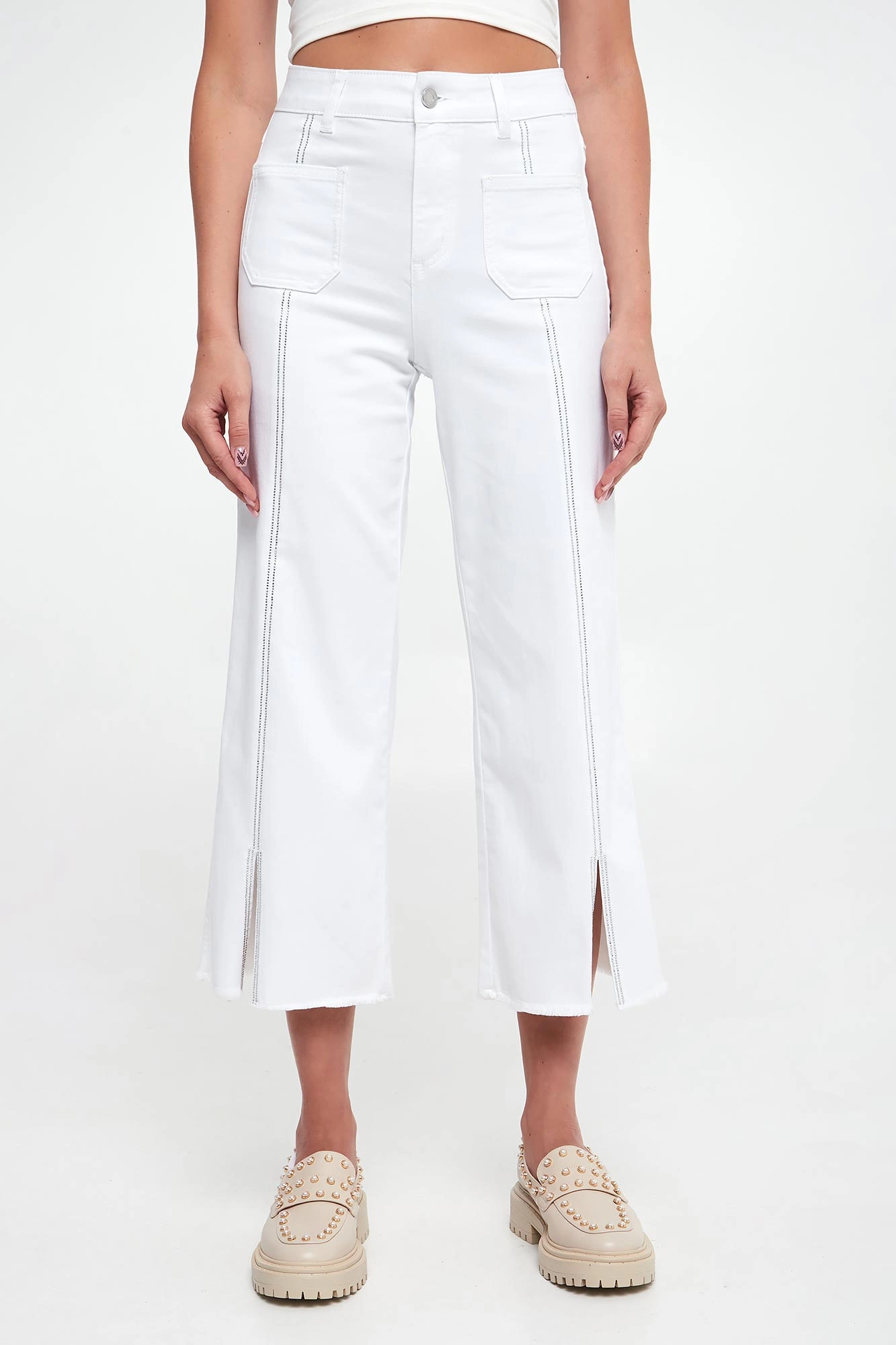 Rozmiar | Szerokość w talii [cm] | Szerokość w biodrach [cm] | Szerokość nogawki na dole [cm] | Wysokość stanu mierzona z przodu [cm] | Długość całkowita [cm] | Długość wewnętrzna nogawki [cm] |