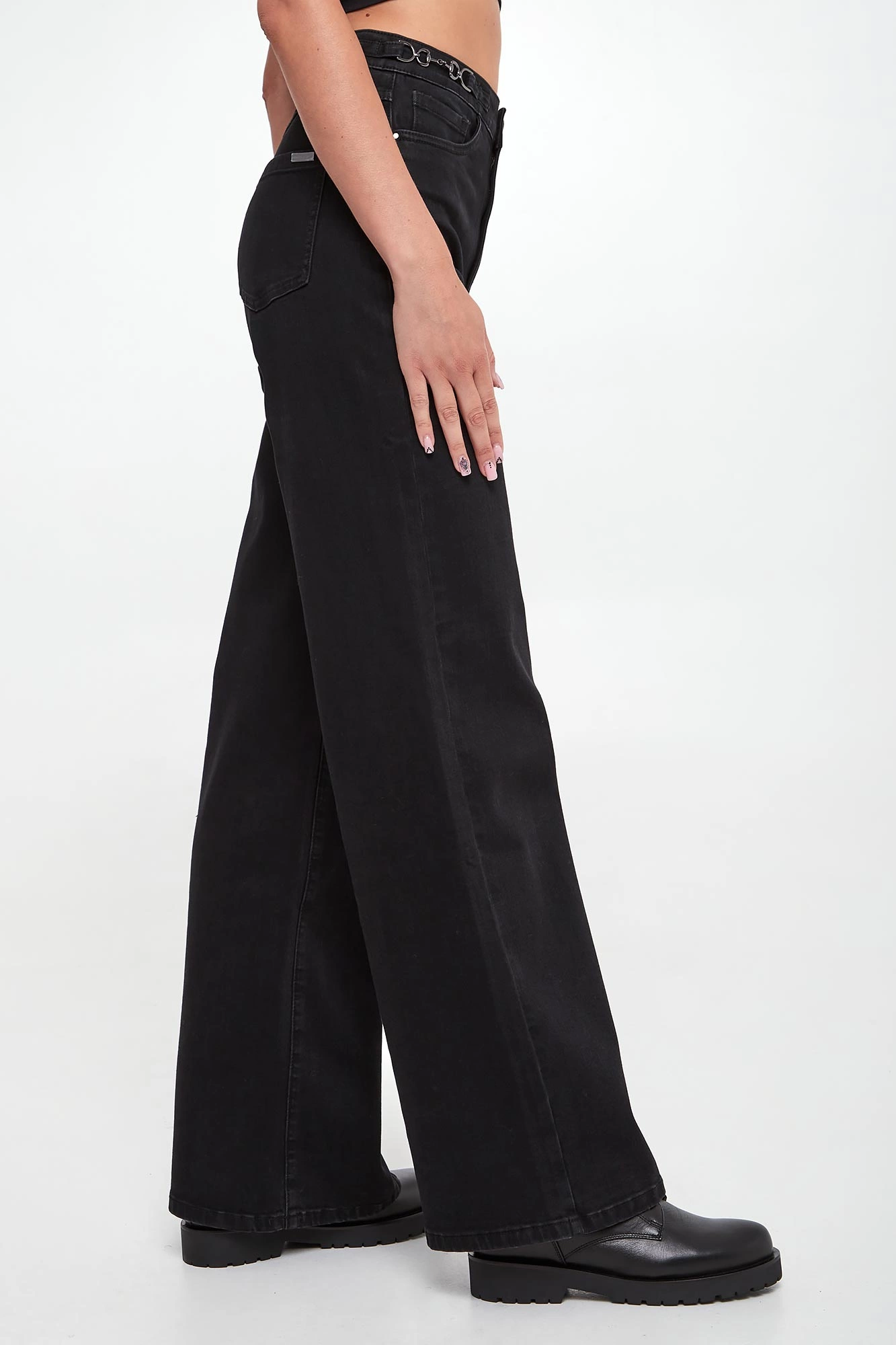- Denim z mieszanki bawełny i elastycznych włókien.