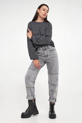 Rozmiar | Szerokość w talii [cm] | Szerokość w biodrach [cm] | Szerokość nogawki na dole [cm] | Wysokość stanu mierzona z przodu [cm] | Długość całkowita [cm] | Długość wewnętrzna nogawki [cm] |