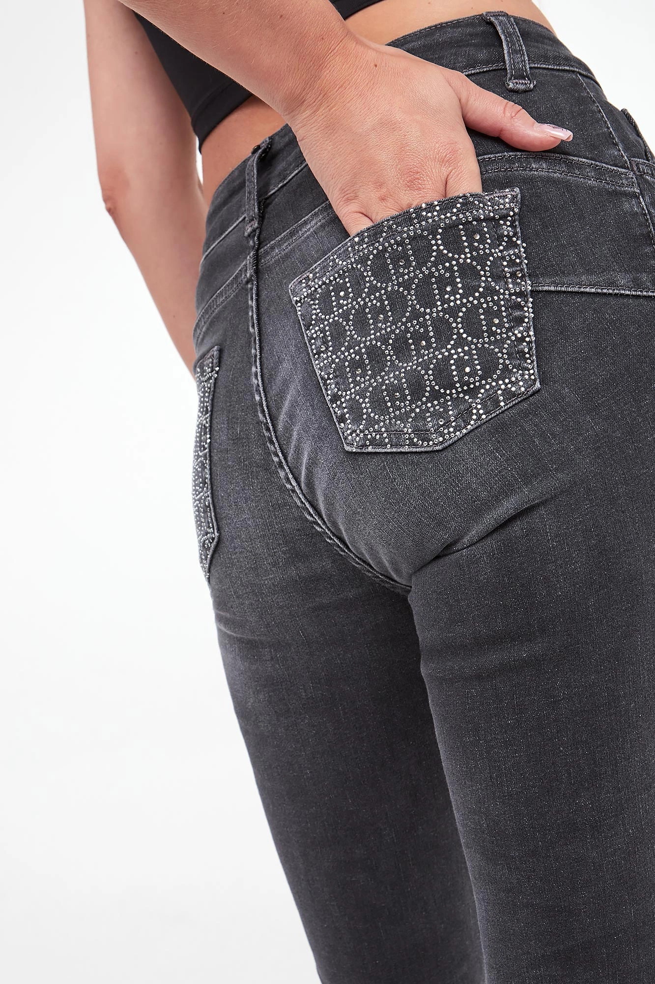 - Kieszenie z tyłu ozdobione logowanym wzorem wykonanym z kryształków.