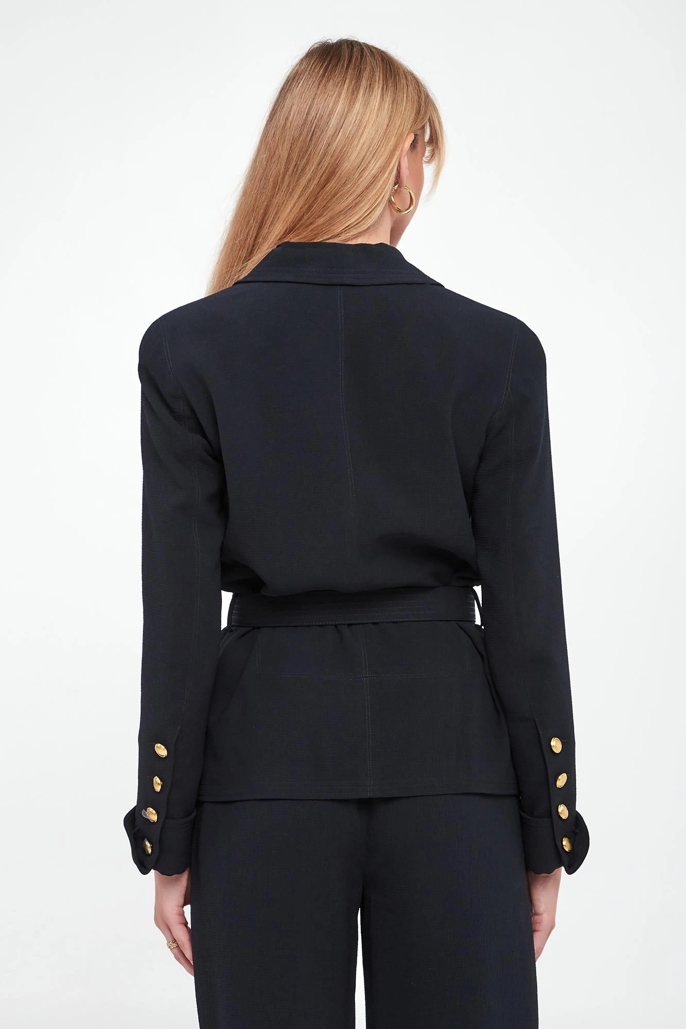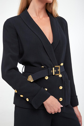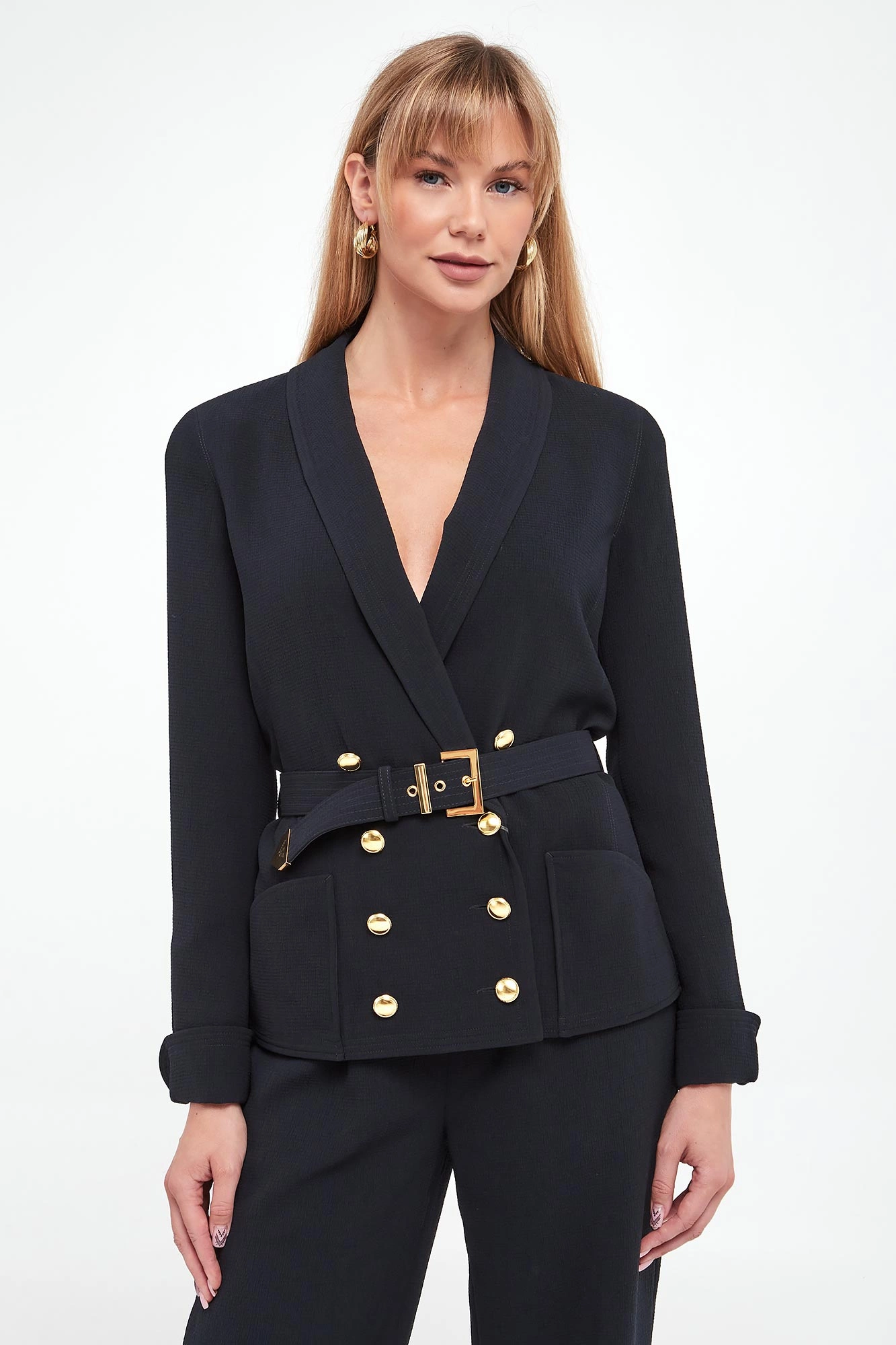 - Zapinana za pomocą złotych, dwurzędowych guzików.