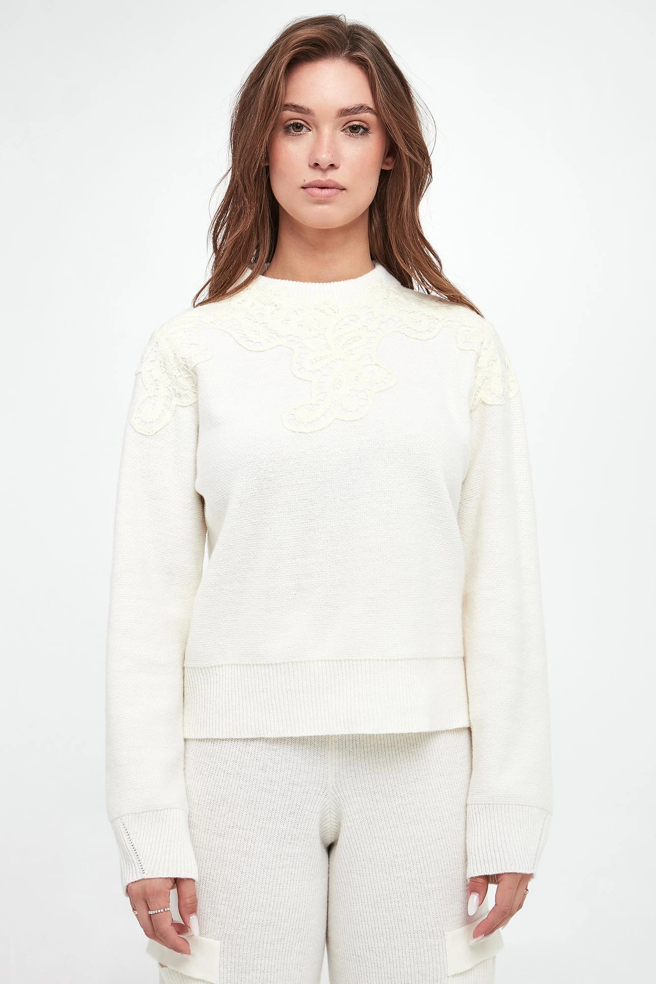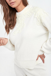 - Ozdobne hafty przy dekolcie i na ramieniu.